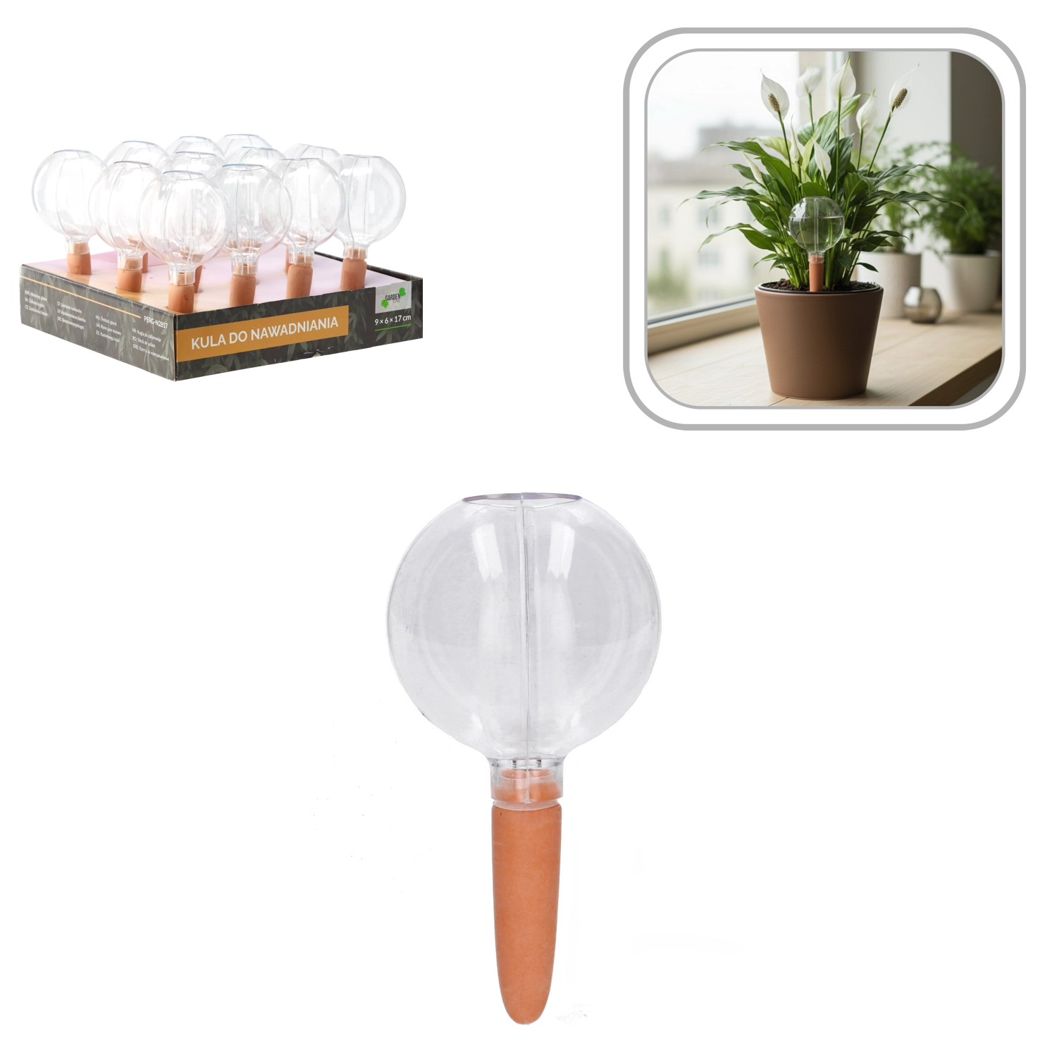Ta namakalna krogla je pametna in preprosta rešitev za zalivanje rastlin, ko niste doma ali ne želite skrbeti za vsakodnevno zalivanje. Prozoren rezervoar se počasi prazni v prst in tako dalj časa ohranja optimalno vlažnost korenin.