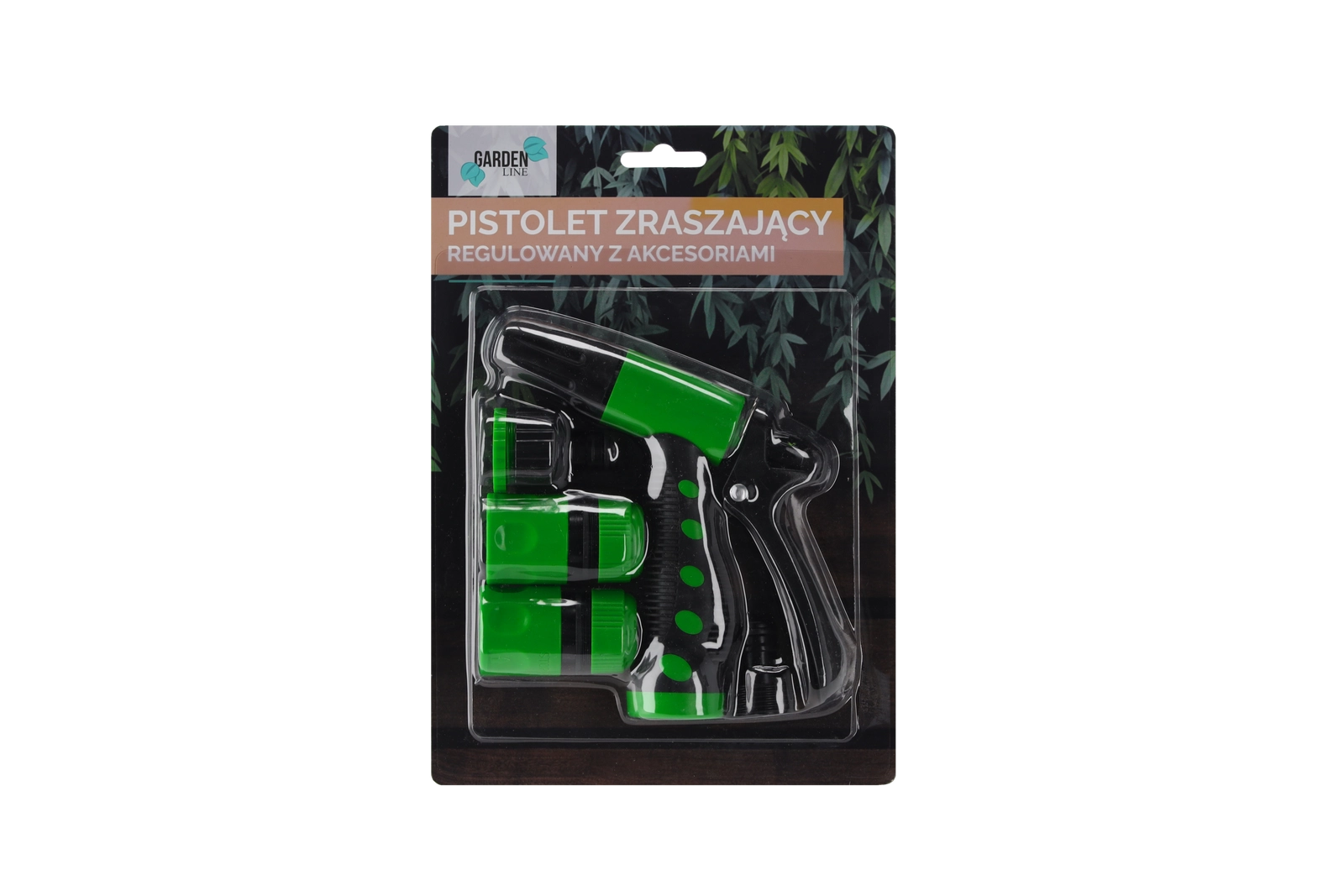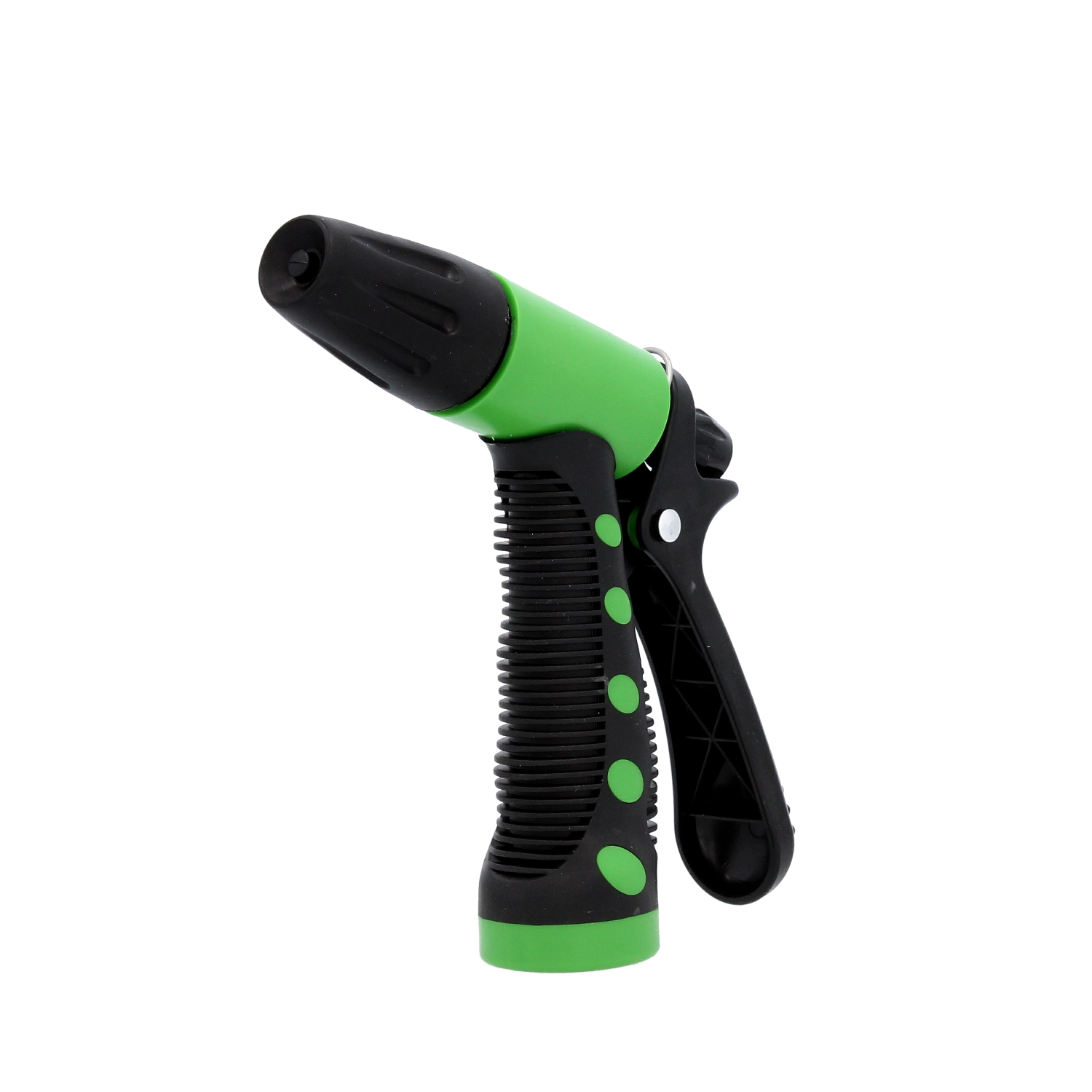 Praktična vrtna razpršilna pištola z bogatim priborom za udobno zalivanje grmovnic, trate in cvetja. Ponuja neprekinjeno nastavitev vodnega curka od točkovnega curka do fine meglice, ergonomski ročaj z mehko površino ter možnost zaklepa sprožilca za stalen pretok. Idealna izbira za začetnike in izkušene vrtnarje.