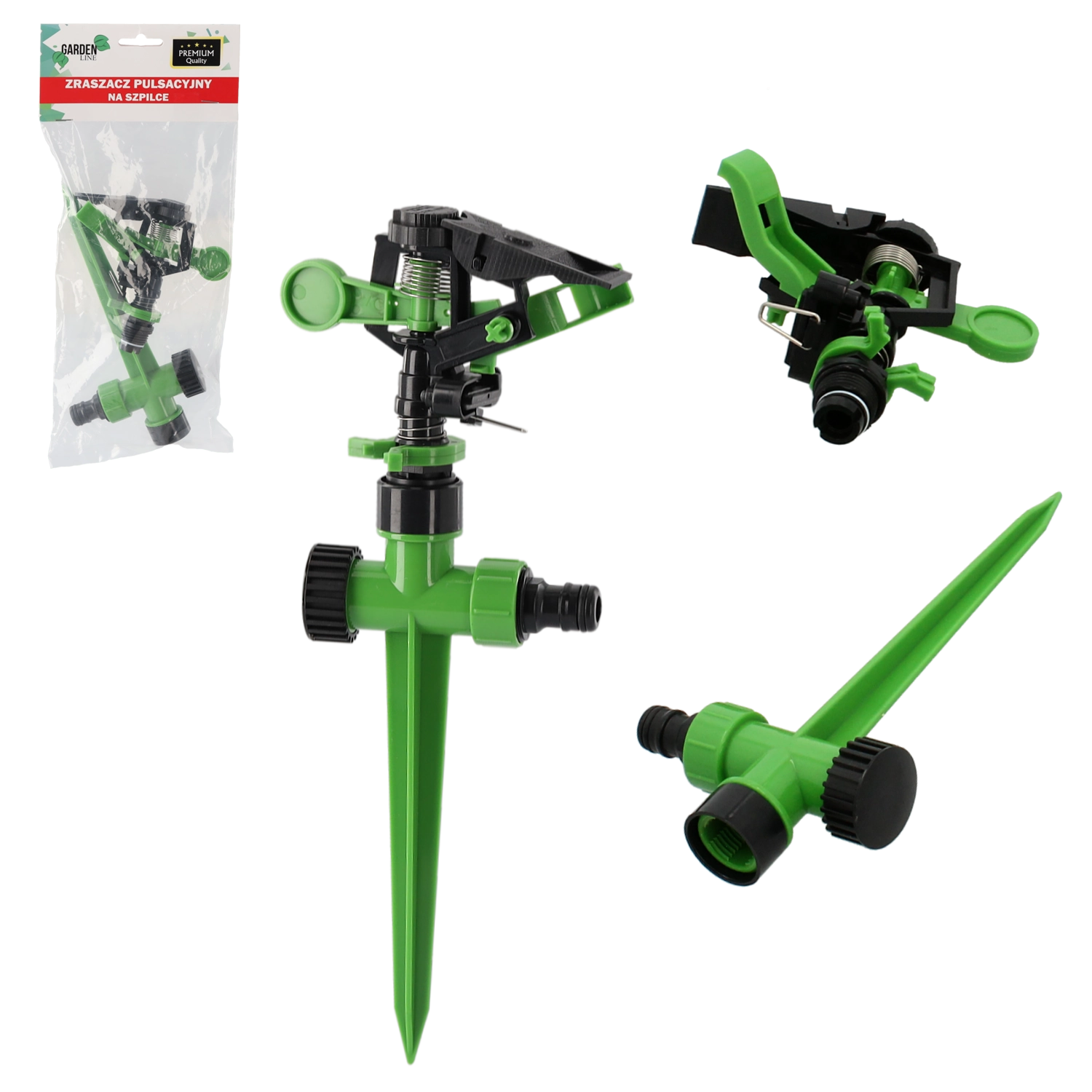 Odkrijte zanesljivo namakanje z impulznim razpršilnikom na kolu, ki je idealen za trate in gredice. Zahvaljujoč nastavljivemu dosegu in možnosti škropljenja v sektorju ali polnem krogu zlahka pokrijete tudi večje, zlasti krožne površine. Odporna glava iz ABS prenese udarce in dolgotrajno uporabo v vrtnih razmerah.