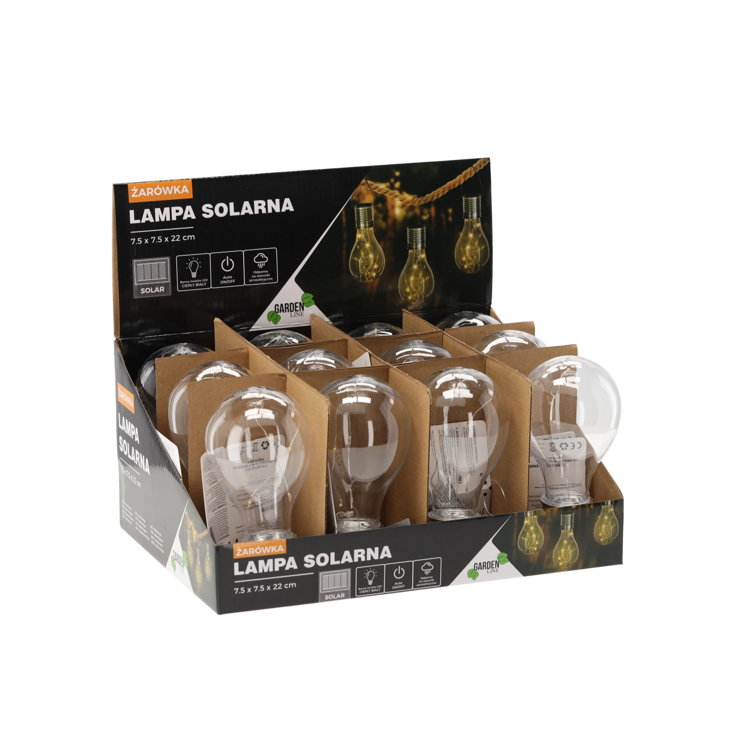 Dizajn, navdihnjen s klasično žarnico, izstopa ob vrtnih stezah, dovozih, gredicah in ribnikih. 5 belih LED nudi nežno, a jasno svetlobo za orientacijo in dekorativni učinek. Sončni panel iz amorfnega silicija zagotavlja polnjenje tudi pri razpršeni svetlobi.