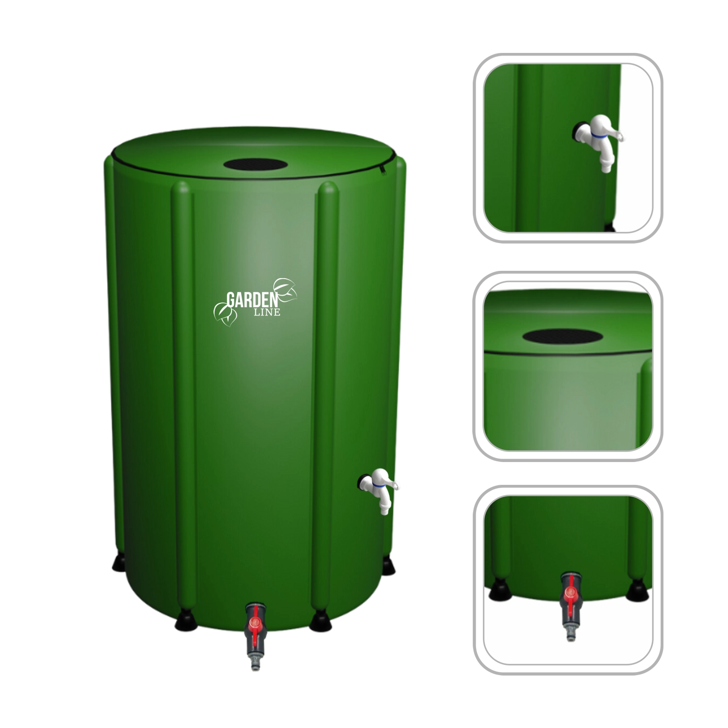 Kompakten in trpežen zložljiv sod za deževnico 250 l je idealen za manjše vrtove, terase in počitniške hiše. Močna PVC tkanina (1000D) je odporna na vremenske vplive in korozijo, pokrov z zadrgo ter mrežasti filtri na vhodih/izhodih ščitijo vodo pred nečistočami. Zahvaljujoč zložljivi zasnovi se enostavno prenaša in izven sezone ne zavzame veliko prostora.