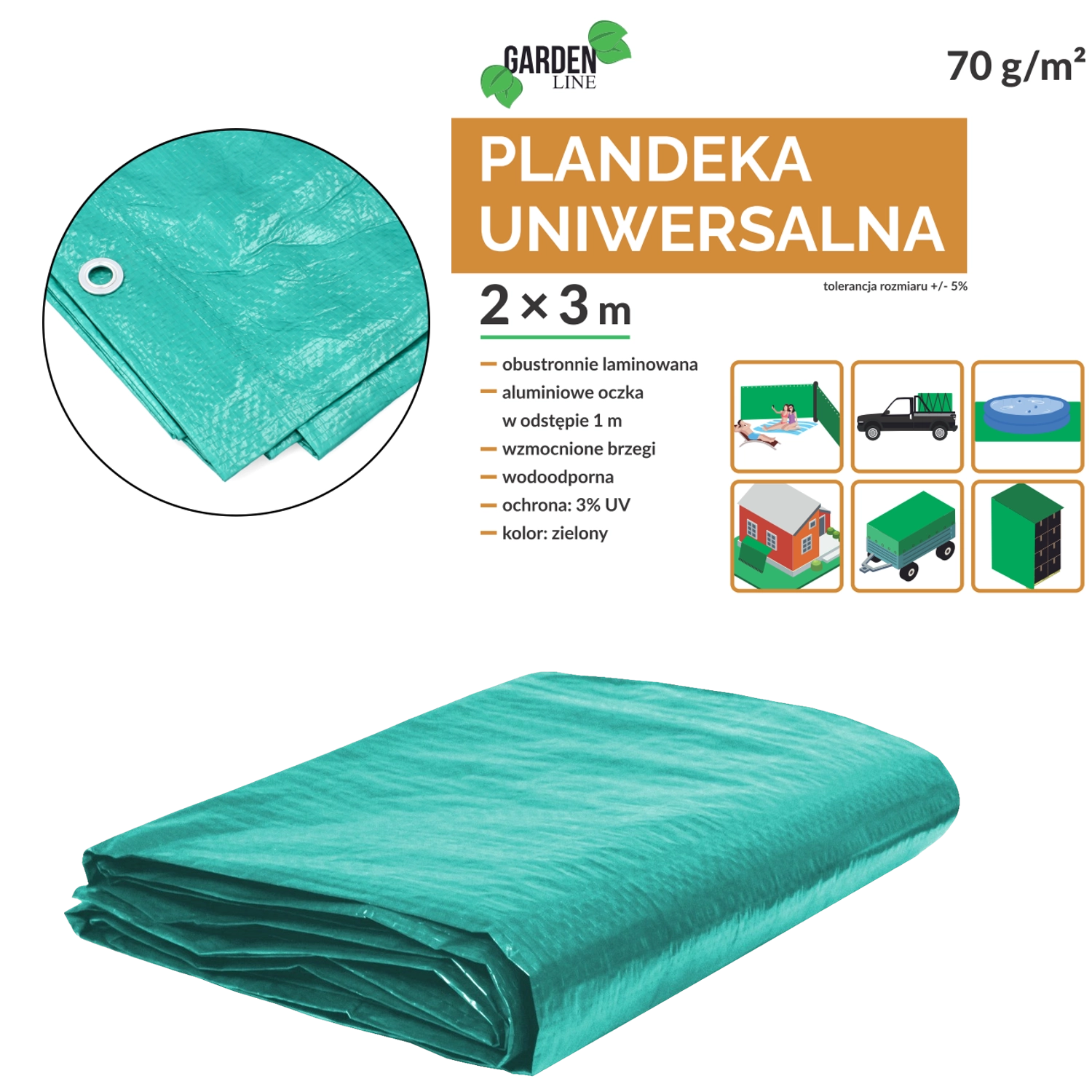 Univerzalna zelena ponjava velikosti 2 × 3 m ščiti pred vremenskimi vplivi, prahom in vlago. Je lahka (70 g/m²), obojestransko laminirana, ima UV zaščito 3 %, kovinska očesa za pritrjevanje in ojačane robove z vrvico za daljšo življenjsko dobo.