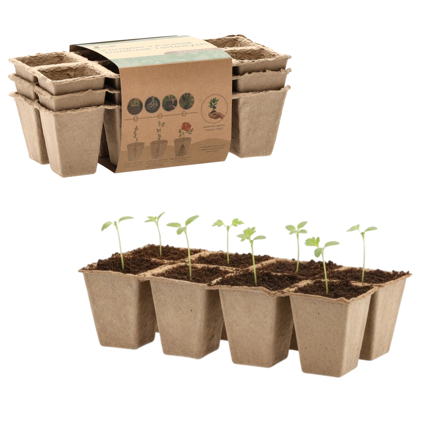 Material je 100 % kompostabilen, zračen in lahek, zato podpira zdrav razvoj sadik. Odlično za paradižnik, kumare, solate in zelišča. Dimenzije pladnjev olajšajo organizacijo na okenski polici, v rastlinjaku in na policah gojitvenih regalov.