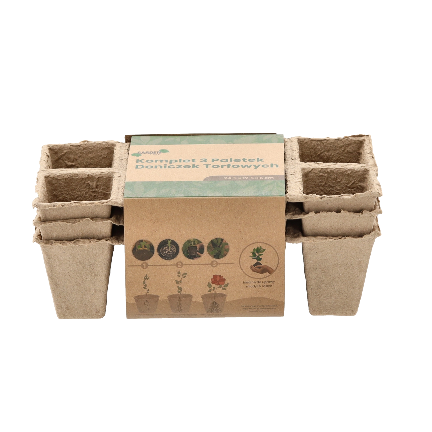 Praktičen set treh ekoloških sadilnih pladnjev iz stisnjene celuloze za predvzgojo zelenjave, zelišč in cvetlic. Vsak pladenj ima več ločenih celic za pregledno setev in enostavno ravnanje. Zaradi naravnega materiala so posodice biološko razgradljive in jih je mogoče posaditi neposredno v tla brez motenja korenin. Idealno za dom, rastlinjak in folijo – udobna predvzgoja, nežna do rastlin in prijazna do narave.