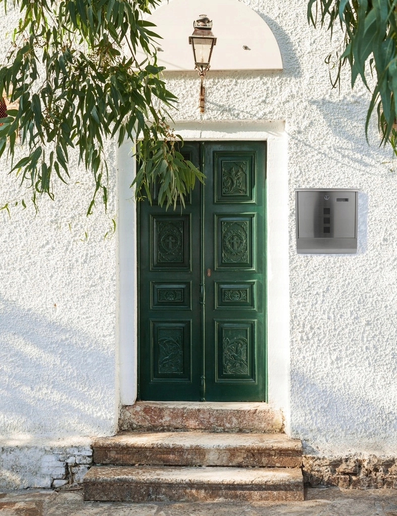 Nabiralnik iz krtačenega nerjavnega jekla je odporen na vremenske vplive, korozijo in vsakodnevno uporabo ter dolgoročno ohranja eleganten videz.