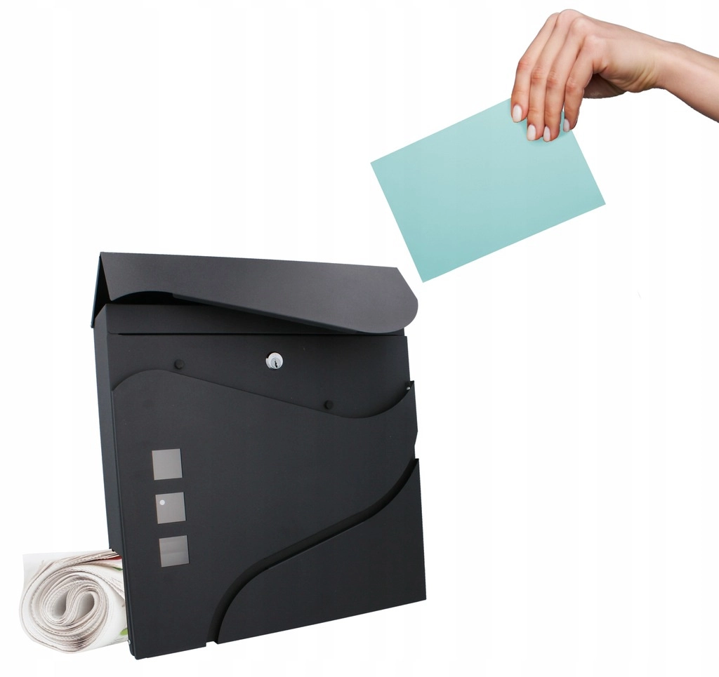 Eleganten minimalističen dizajn z nežnimi linijami in tremi okenci dopolnjuje moderne fasade. Praktičen stranski ali spodnji predal za časopis (odvisno od različice) omogoča ločeno shranjevanje tiskanih medijev. Montaža na steno je hitra zaradi predvrtanih lukenj.