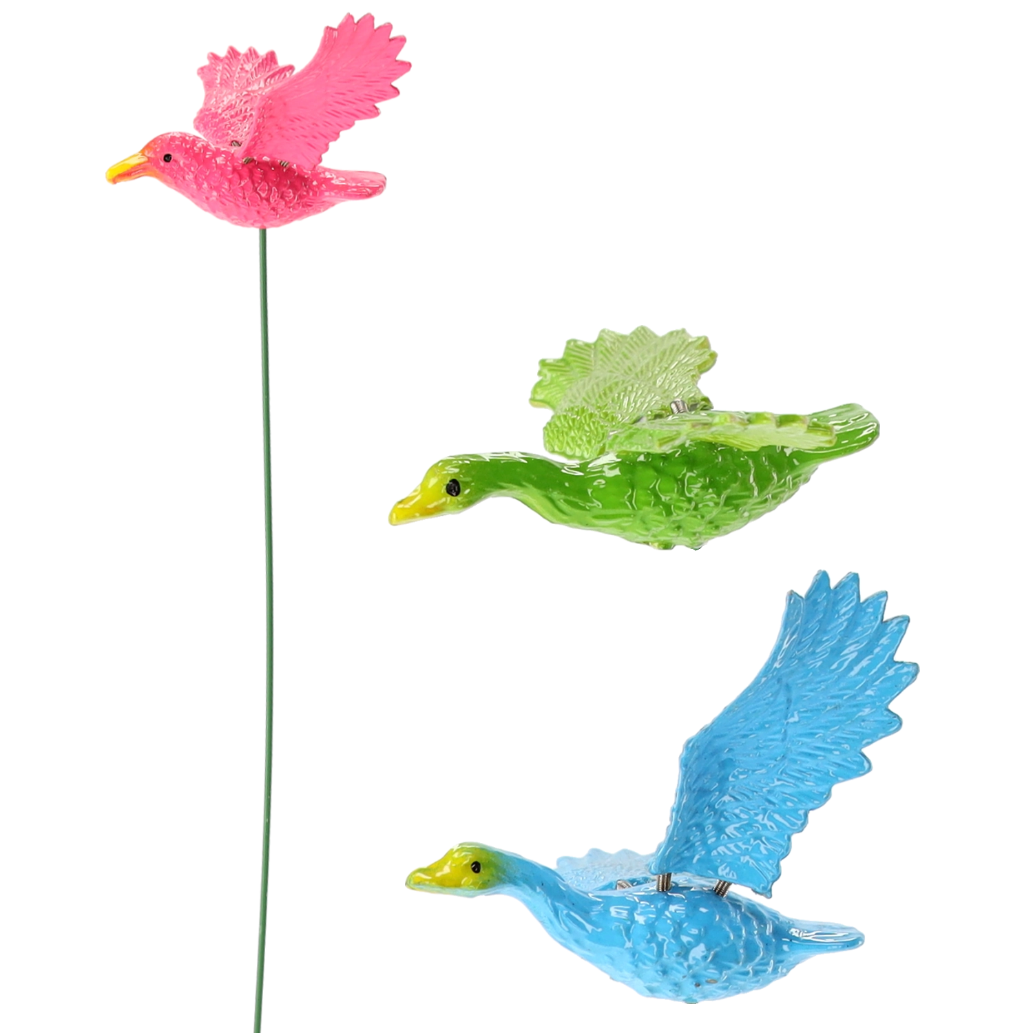 Stilska vrtna dekoracija v obliki ptice na palčki polepša lončnico ali gredo. Je lahka, trpežna in enostavna za namestitev. Idealna za popestritev zunanjih površin in notranjih prostorov. Trpežna plastična izvedba, preprosta namestitev v zemljo in vsestranska uporaba v loncih in na vrtu.