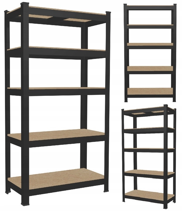 Univerzalni petpolični regál v črni barvi ponuja visoko nosilnost, trdno kovinsko konstrukcijo in pregledno shranjevanje v kleti, garaži in delavnici. Stabilen okvir iz kovinskih profilov ter HDF police z ojačitvenimi prečkami pod vsako polico prenesejo do 175 kg na polico (enakomerno porazdeljeno), skupaj do 875 kg. Enostavna montaža brez nepotrebnih zapletov.