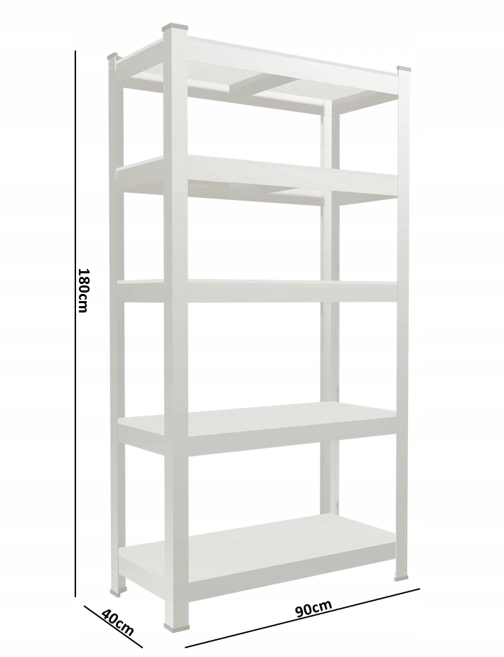 Pet prostorskih polic s praktičnimi dimenzijami 180 × 90 × 40 cm omogoča pregledno in učinkovito shranjevanje v garaži, delavnici in gospodinjstvu.