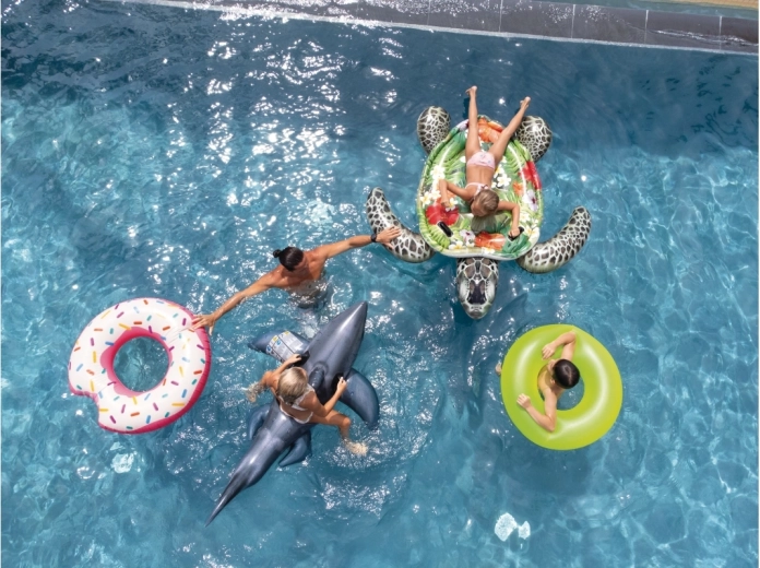 Široka zgornja površina nudi udobje med počitkom in dovolj prostora za vodno zabavo.
