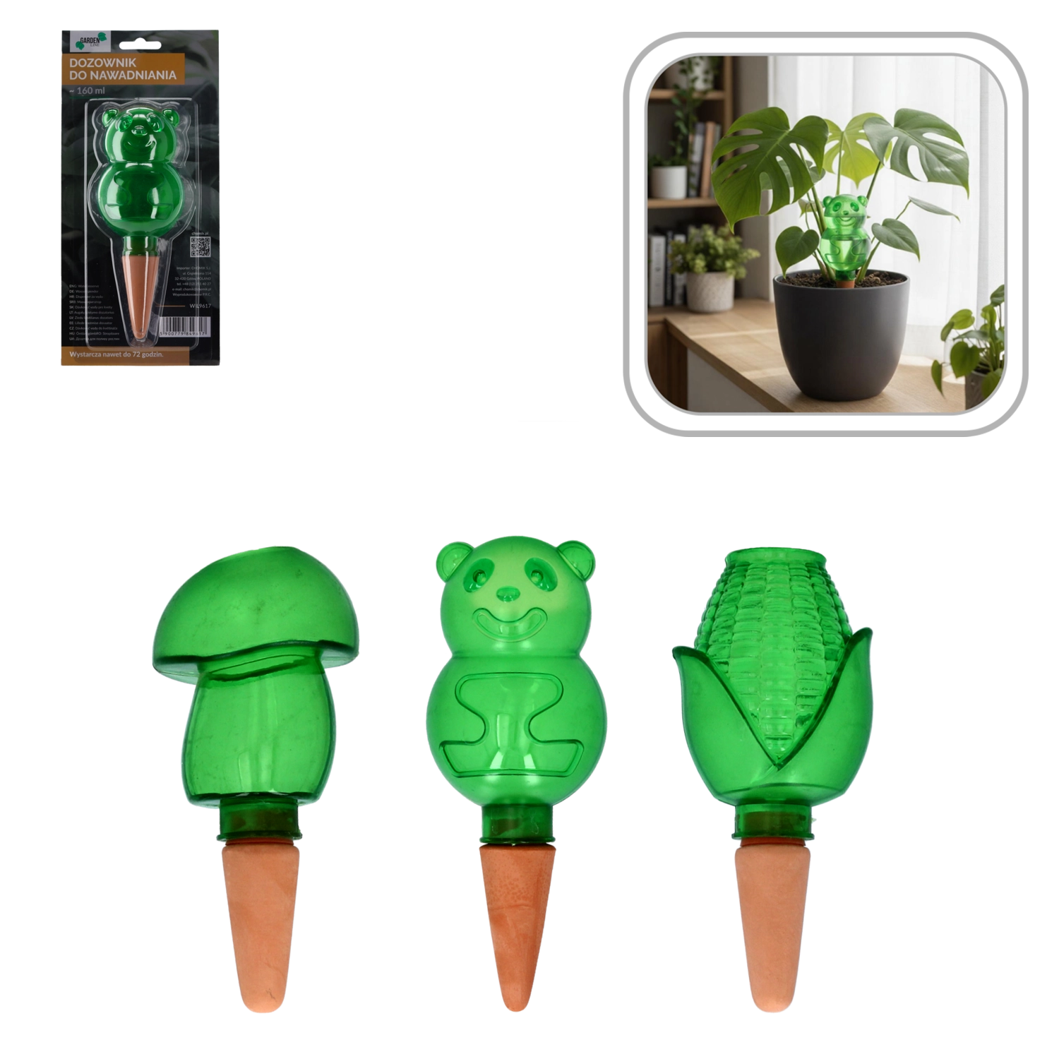 Izberite obliko medvedka, koruze ali gobice in svojim rastlinam dodajte igriv videz, ki hkrati opravlja praktično funkcijo zalivanja.