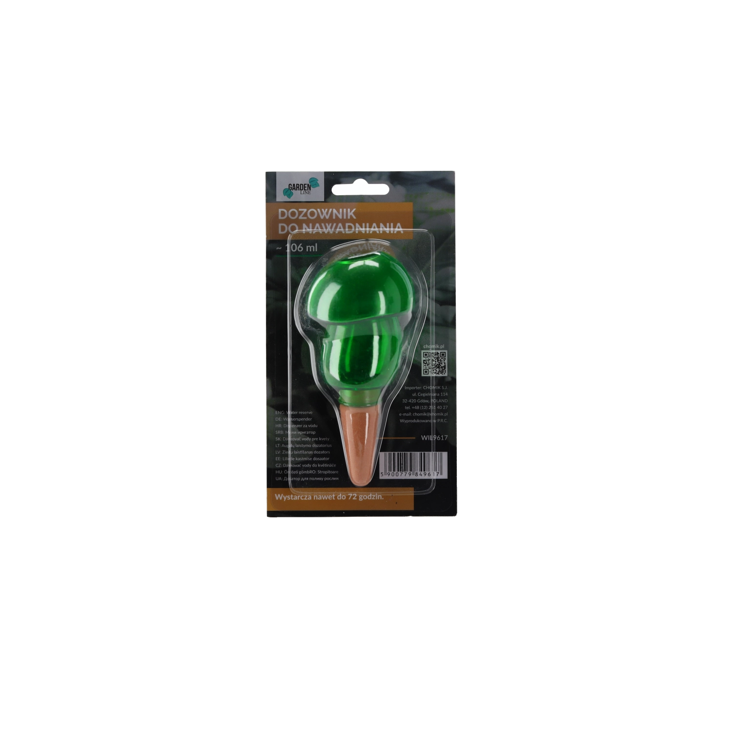 Samozalivalna krogla/dozirnik je pametna rešitev za vse, ki želijo imeti zdrave in sveže rastline brez vsakodnevnega zalivanja. Dovolj je, da ga napolnite z vodo, konico zapičite v prst in dozirnik bo postopoma sproščal vlago neposredno do korenin do 72 ur. Prozorna izvedba omogoča preprost vizualni nadzor nad preostalo vodo.