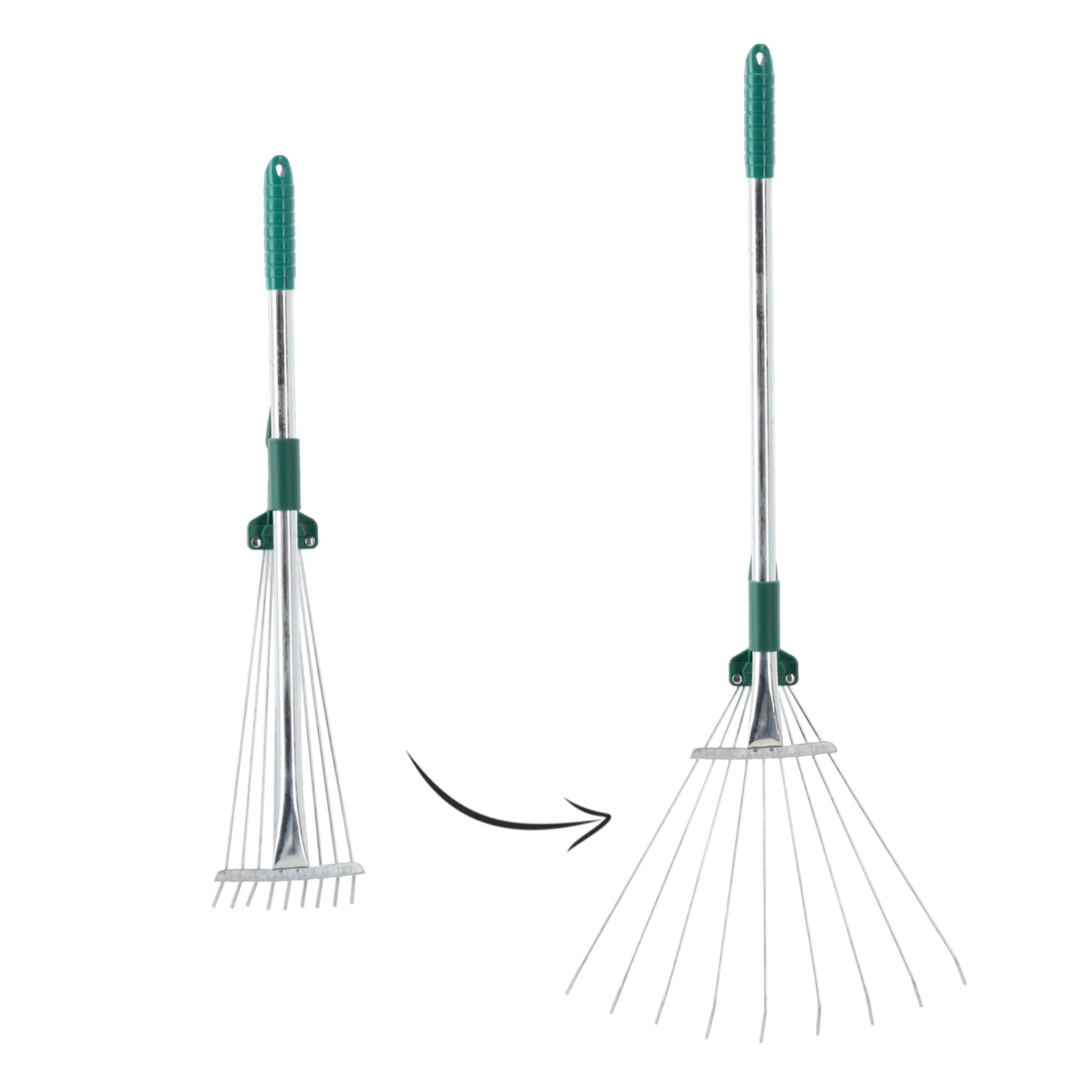 Nastavljive pahljačaste grablje so idealna izbira za vsakodnevno urejanje vrta. Nastavljiva glava s prožnimi žicami omogoča spreminjanje širine zagraba za natančno delo v ozkih mestih ali hitro grabljenje na večjih površinah. Teleskopsko držalo olajša rokovanje in prihrani prostor pri shranjevanju.