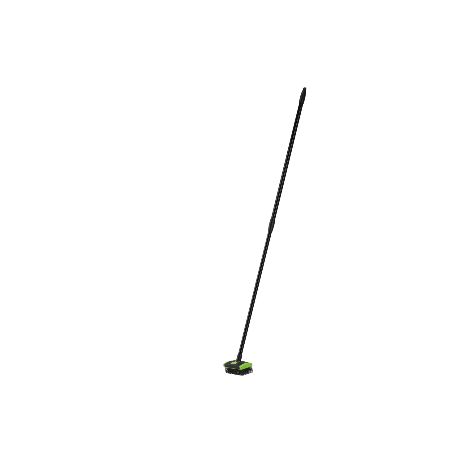 Kovinska teleskopska ročica z dolžino do 140 cm zagotavlja doseg brez nepotrebnega sklanjanja. Čistite pločnike in terase v pokončnem položaju.