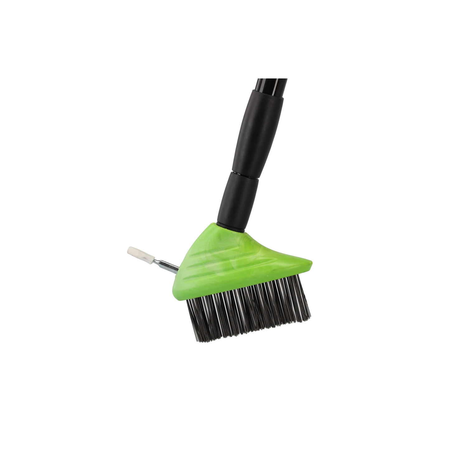 Trikotna žičnata krtača s strgalom za kote in fuge, široka ploska krtača za površine ter kompaktna krtača za podrobno čiščenje – vedno popolno orodje pri roki.