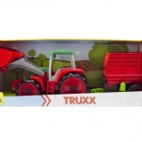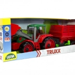 Predstavljamo vam Lena Truxx traktor z vozom, idealno igračo za male kmete. Ta plastični traktor izstopa s svojim robustnim dizajnom v rdeči in zeleni barvi, ki ga dopolnjuje funkcionalna zajemalka in odstranljiv voz. V kabini traktorja je nameščena mala figurica voznika, ki igri dodaja realističnost.