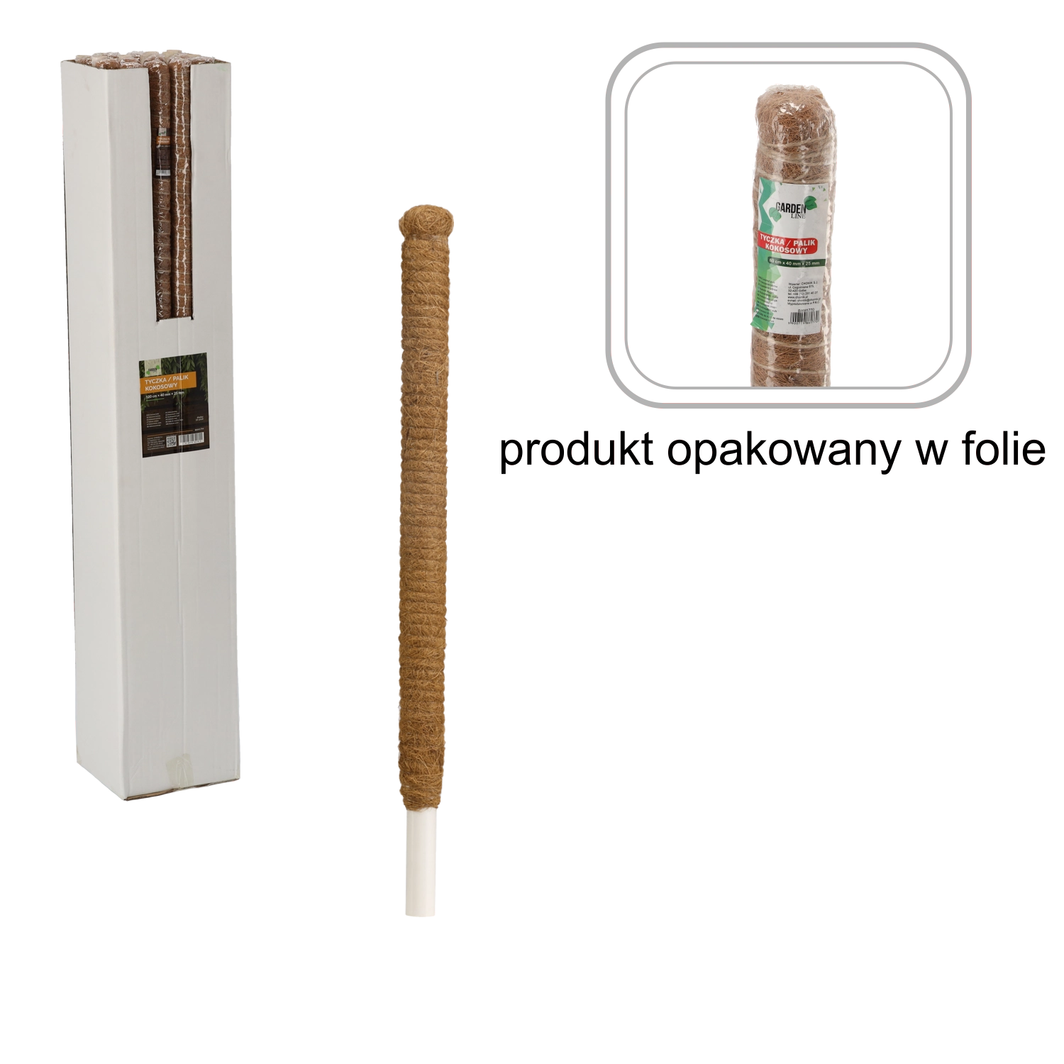 V loncu deluje naravno in estetsko, zato je primerna tudi za ustvarjanje dekorativnih postavitev. Dolžina 120 cm in premer kokosovega dela 40 mm zagotavljata dovolj površine za pritrditev tudi nekoliko robustnejših stebel.