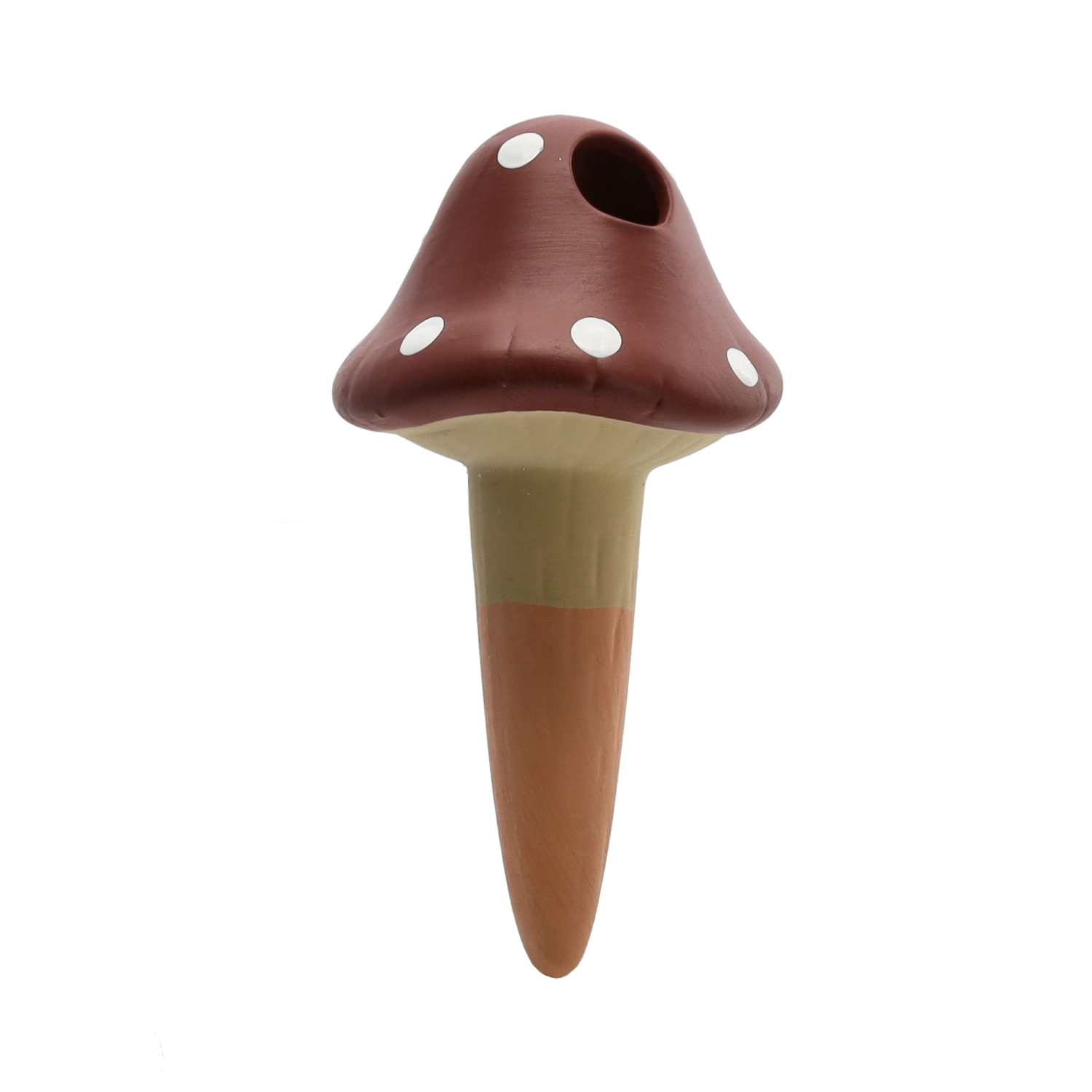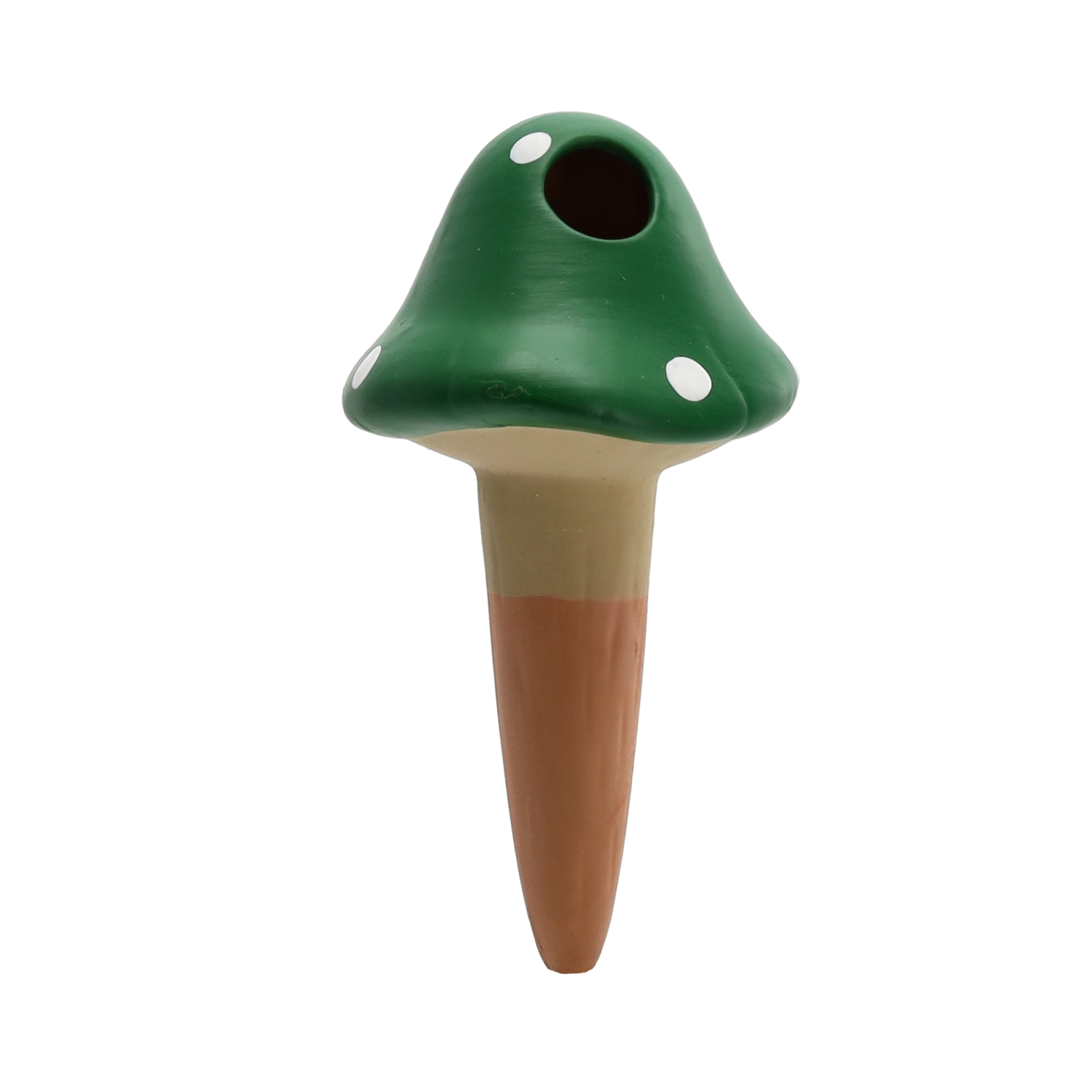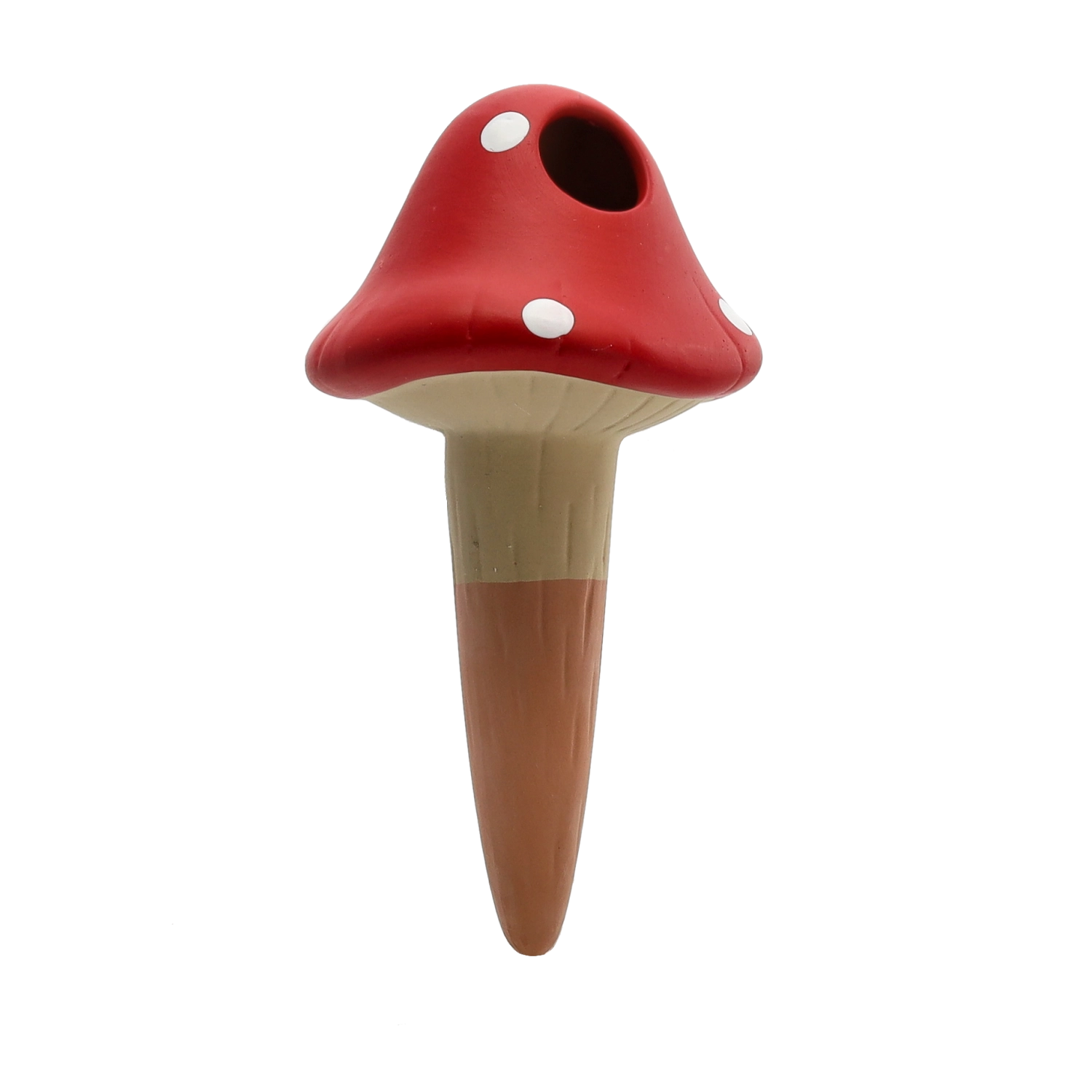 Praktični samozalivalni nastavek v obliki mušnice iz trpežne keramike poskrbi za stalen dotok vlage neposredno h koreninam. Zaradi počasnega sproščanja vode pomaga preprečevati prekomerno zalivanje in izsuševanje substrata ter rastlinam zagotavlja stabilne pogoje, ko ste na dopustu ali preprosto ne utegnete redno zalivati.