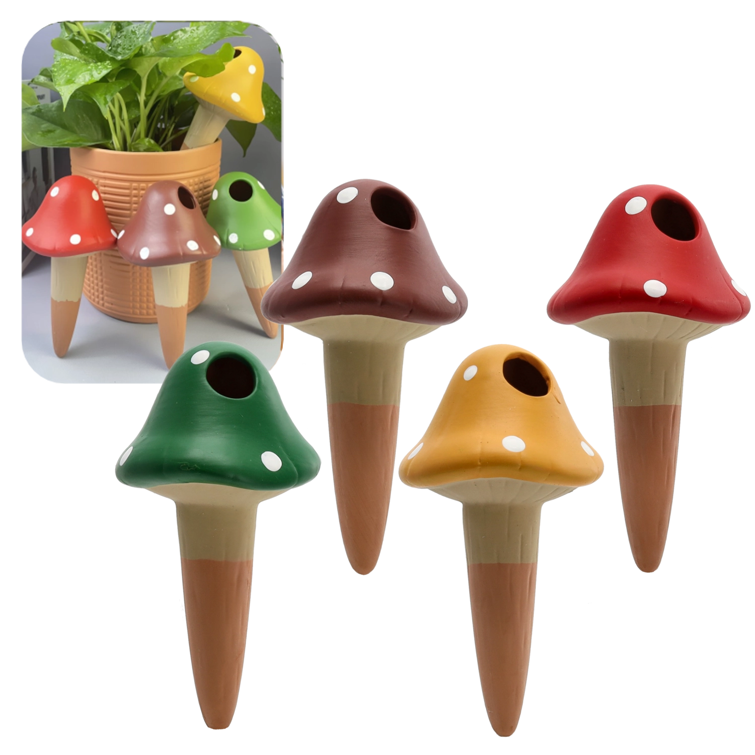 Odlično deluje v loncih, koritih in visečih posodah. Dekorativna zasnova s pikasto kapico doda vašim rastlinam igriv videz, hkrati pa ostaja popolnoma funkcionalna. Na voljo v mešanici barv (zelena, rdeča, rjava, rumena), zato lahko videz zlahka uskladite z notranjostjo ali sezonsko dekoracijo.