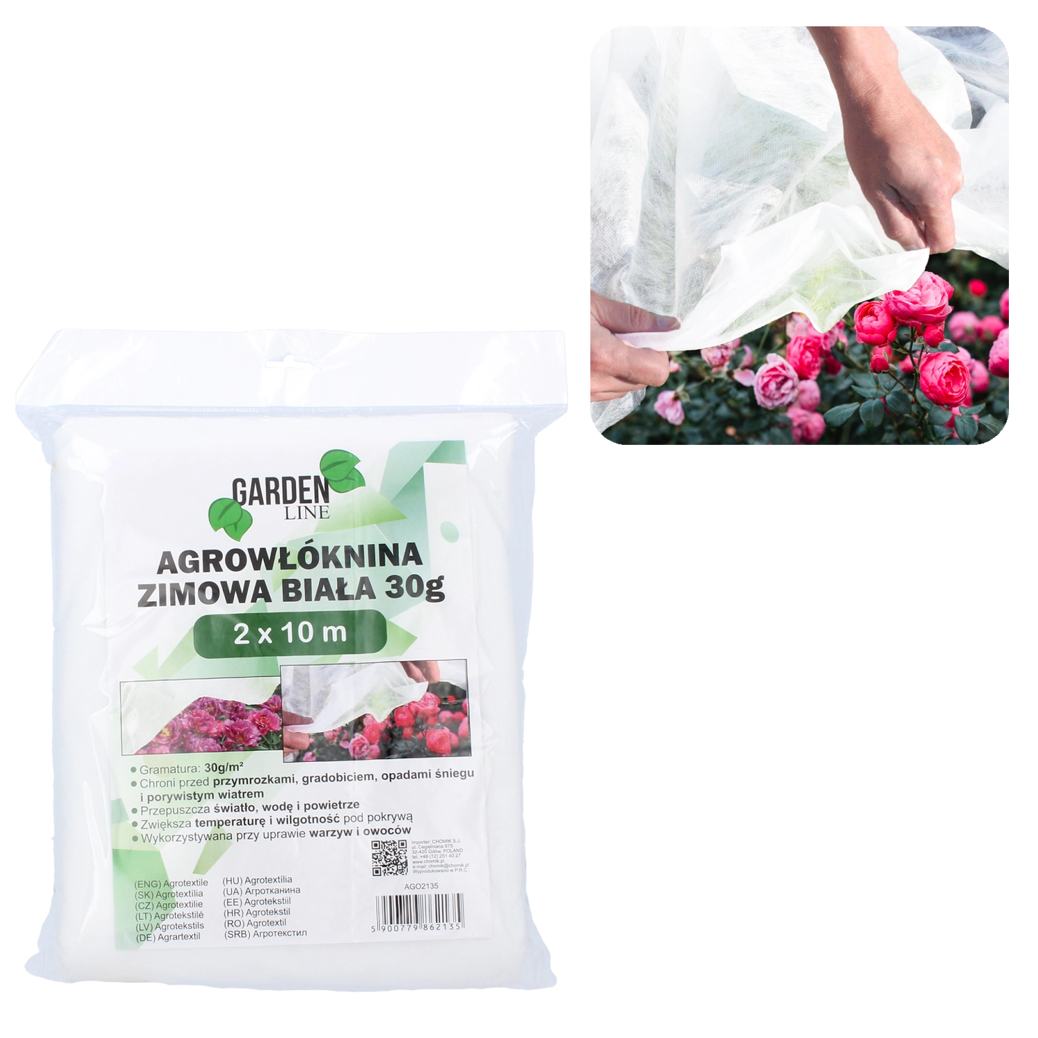 Univerzalna agrotekstilija za zimo in zgodnjo pomlad z gramatura 30 g/m² zanesljivo ščiti grmovnice, drevesa in druge rastline pred mrazom, točo, snegom in vetrom. Zaradi sposobnosti povečanja temperature in ohranjanja vlage pod prekrivko ustvarja optimalne pogoje za rast. Material je UV obstojen in hkrati prepusten za svetlobo, vodo in zrak za bolj zdrave rastline.