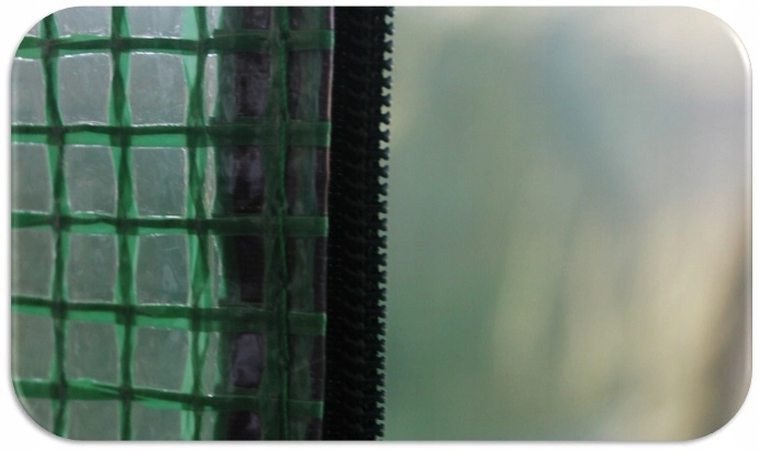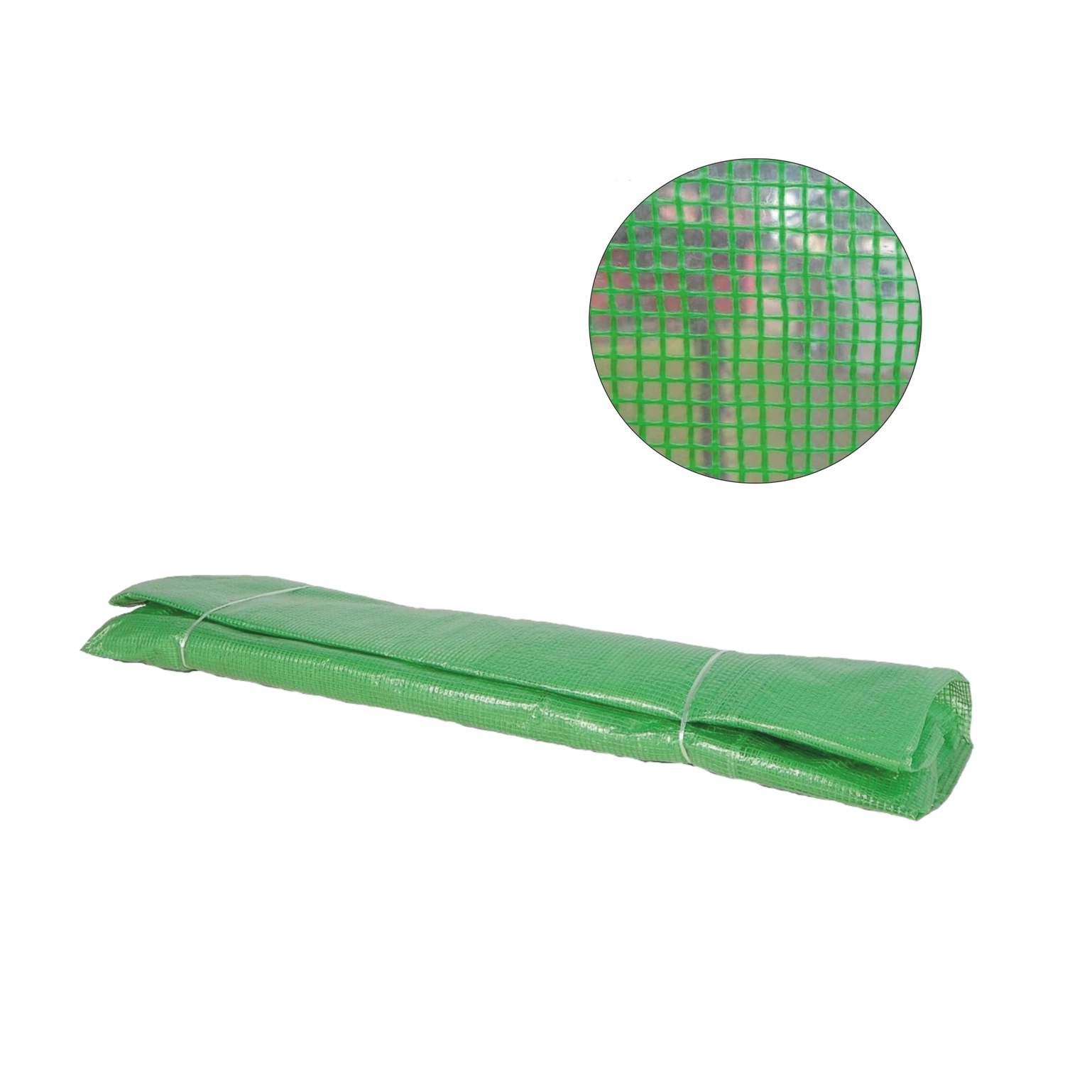 Močna PE folija približno 140 g/m² z ojačitvijo PP mrežice zagotavlja dolgo življenjsko dobo, stabilnost in zaščito pred soncem zahvaljujoč UV4 filtru.