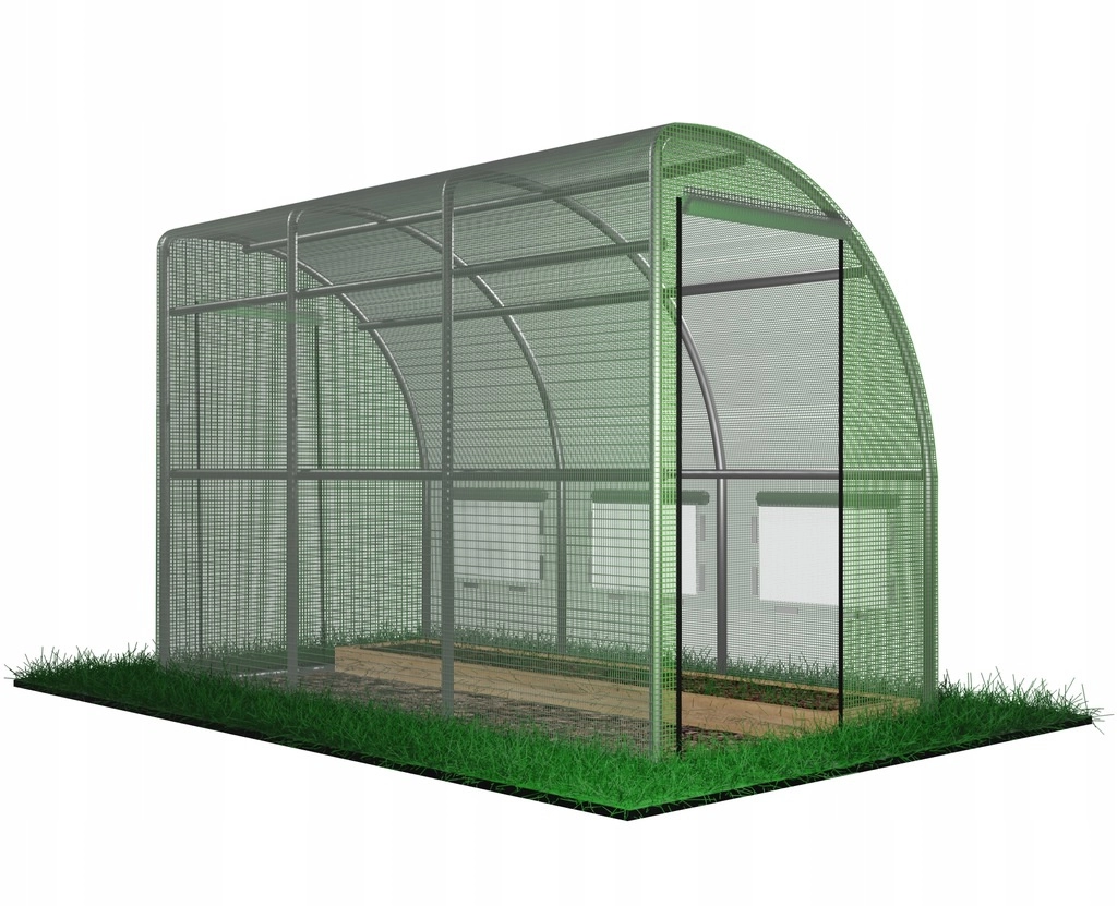 Tri okna z insektno mrežo zagotavljajo kroženje zraka. Široka zložljiva vrata na zadrgo omogočajo udoben vstop in upravljanje gredic.