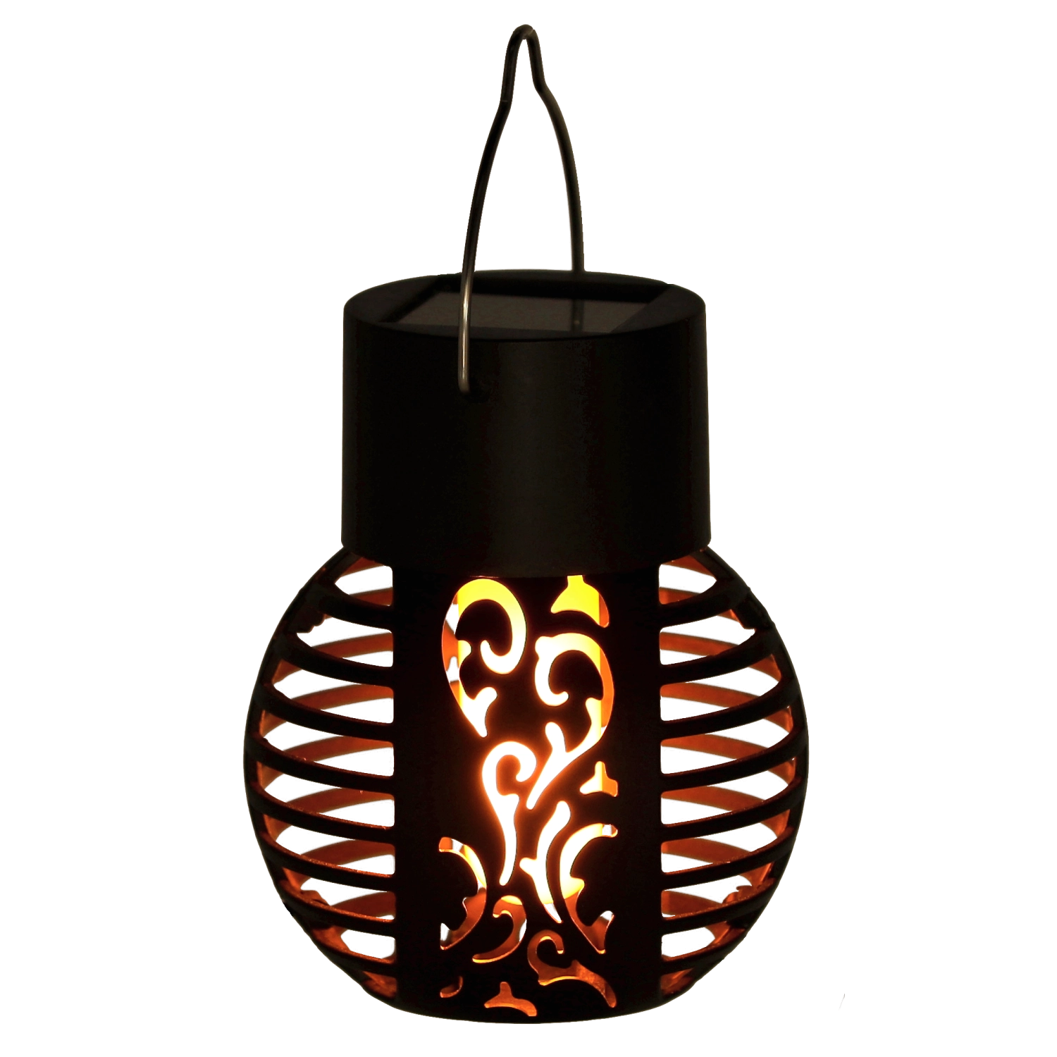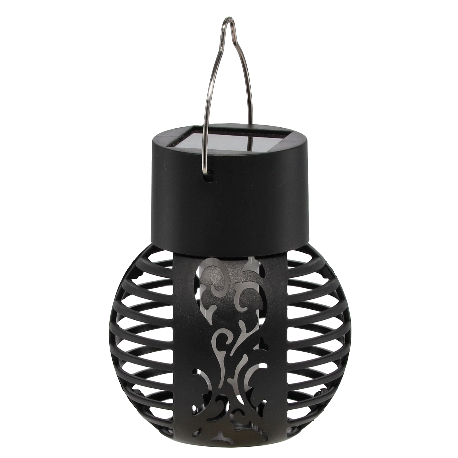 Stilska zunanja laterna z izrezljanim dekorjem projicira na okolico privlačne sence ter po mraku ustvarja prijetno vzdušje. 6 LED diod s toplim odtenkom posnema živ plamen brez dima in tveganja odprtega ognja.