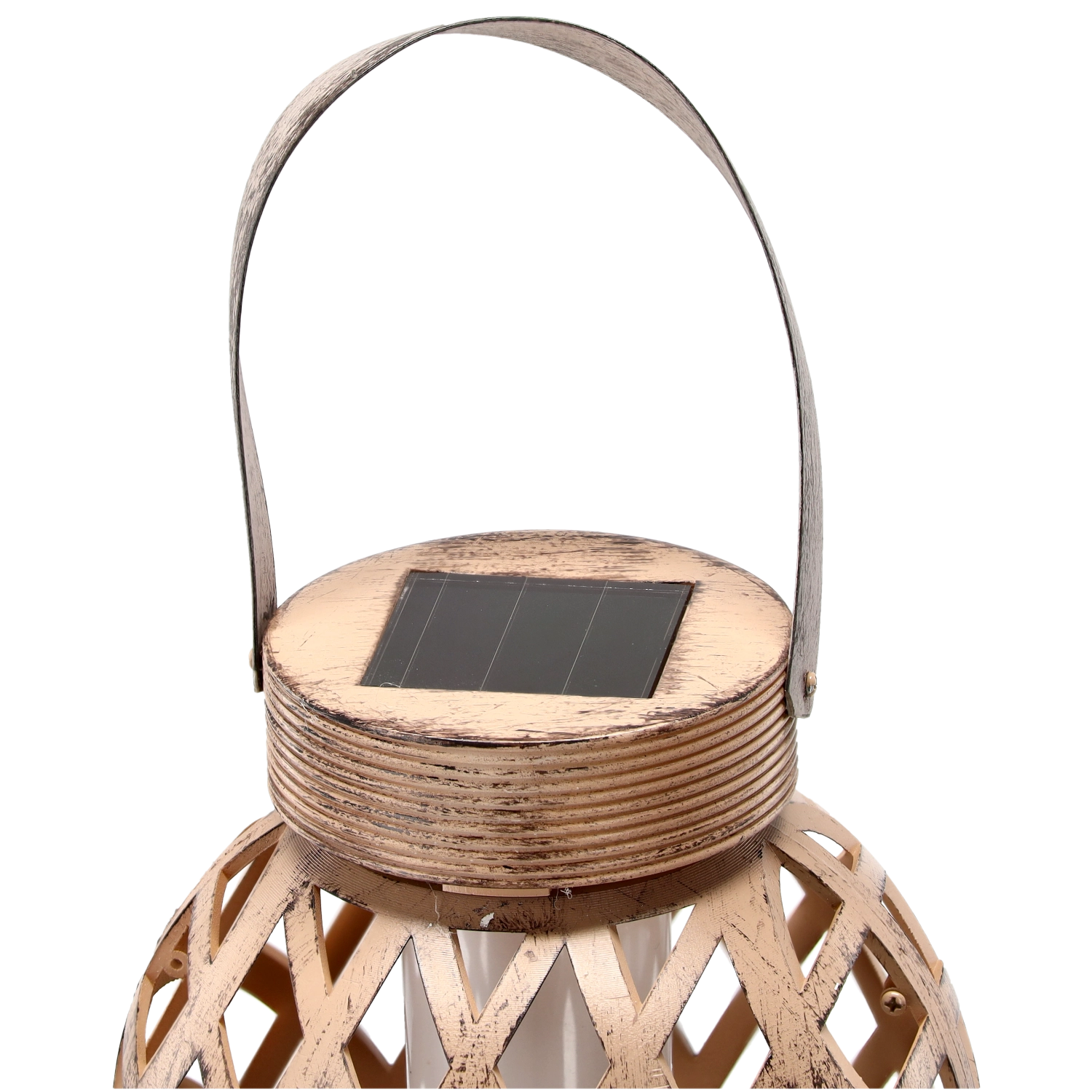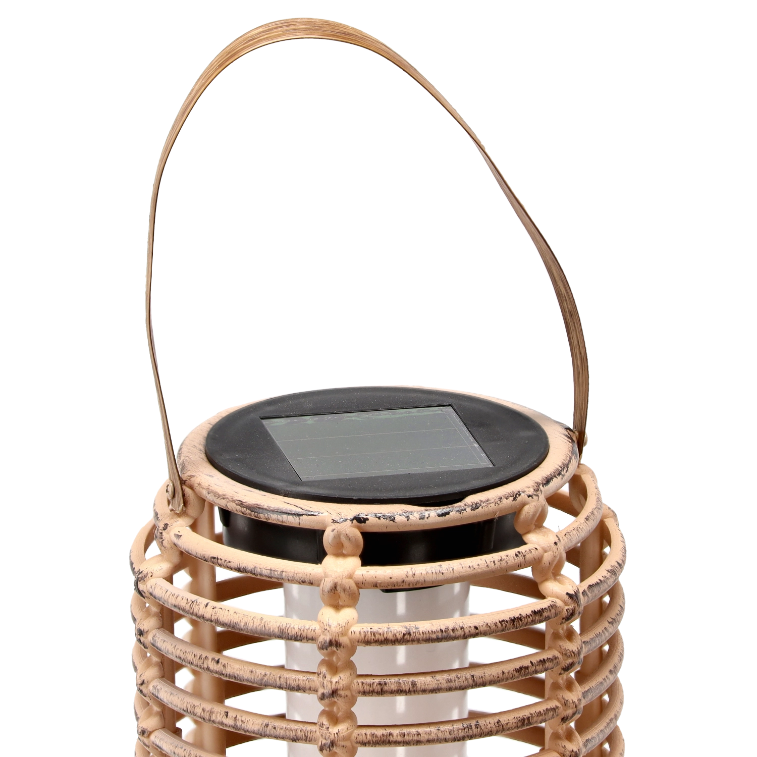 Sončna laterna iz serije Garden Line je praktična in dekorativna zunanja osvetlitev brez kablov. Polni se z energijo sonca in zahvaljujoč vzdržljivosti akumulatorja po mraku sveti prijetno toplo belo, ki spominja na takt plamena. Antičen videz in letvast/»ratan« učinek dodata vrtu rustikalni čar.