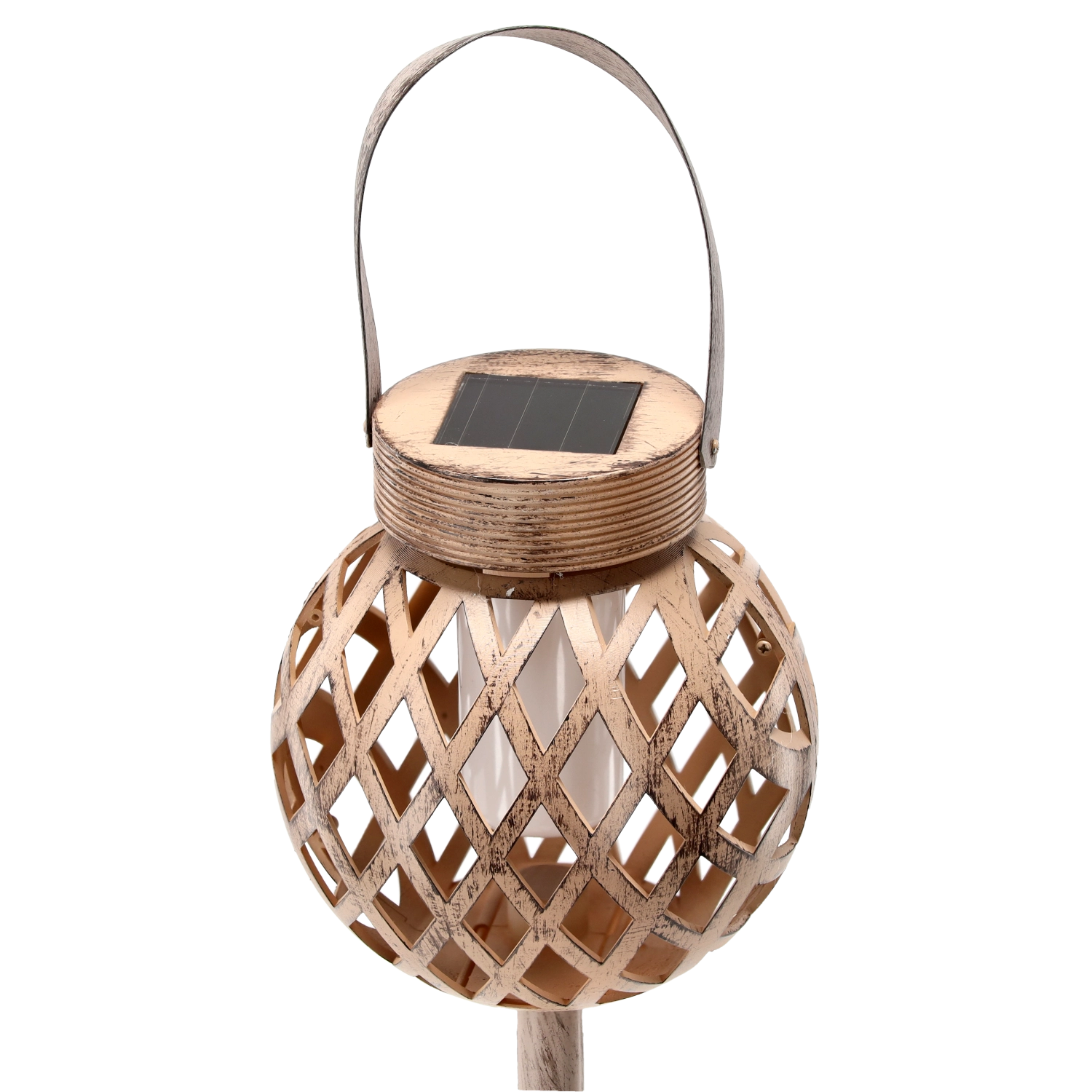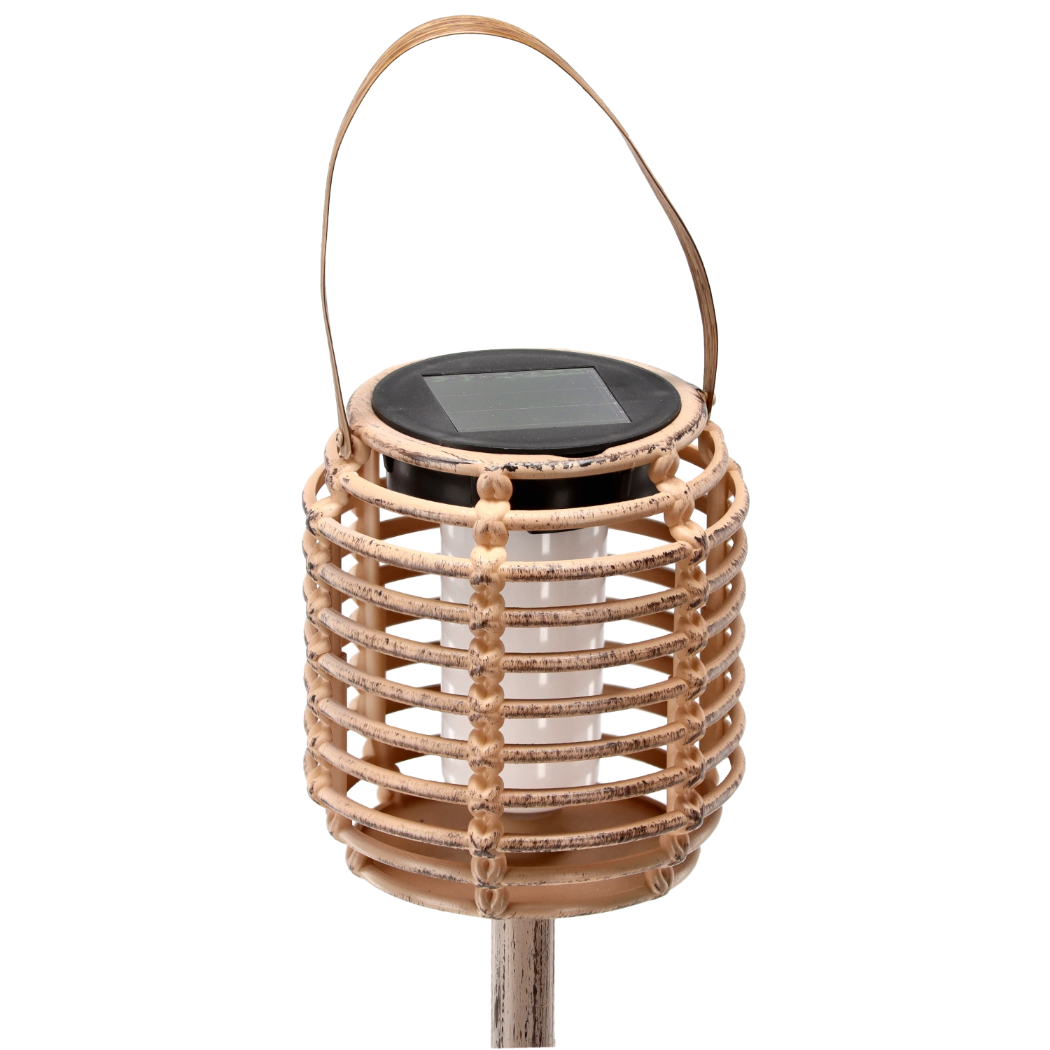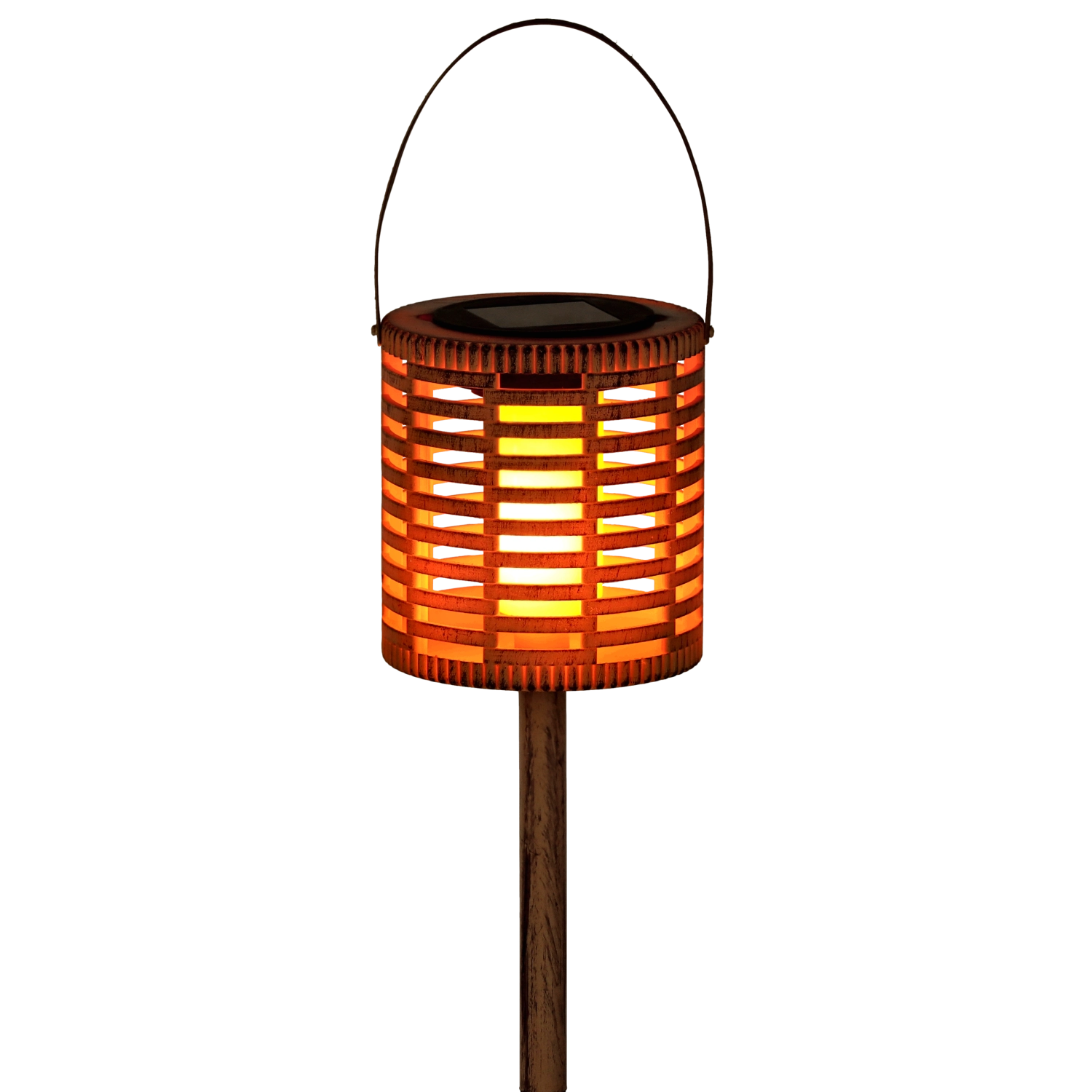 Slogovna sončna laterna z višino 35,5 cm bo v vašem vrtu ustvarila prijetno vzdušje. Zahvaljujoč vgrajenemu sončnemu panelu se podnevi polni in zvečer samodejno sveti s toplo belo svetlobo in učinkom plamena. Je odporna na vremenske vplive (IP44), primerna za zabijanje v zemljo in idealna ob sprehajalnih poteh, dovozih, terasah in verandah.