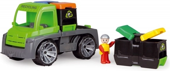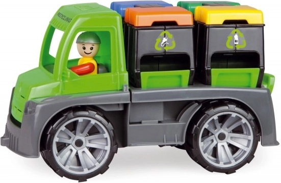 V kompletu sta dva posebna kontejnerja z varovalom proti spontani ločitvi od tovornjaka. Vsak kontejner ima dvižen pokrov in spodnje izpraznjenje, kar omogoča interaktivno igranje s sortiranjem odpadkov. Aktivna figura dodatno povečuje igralno izkušnjo in uči otroke o zapletenosti ravnanja z odpadki.