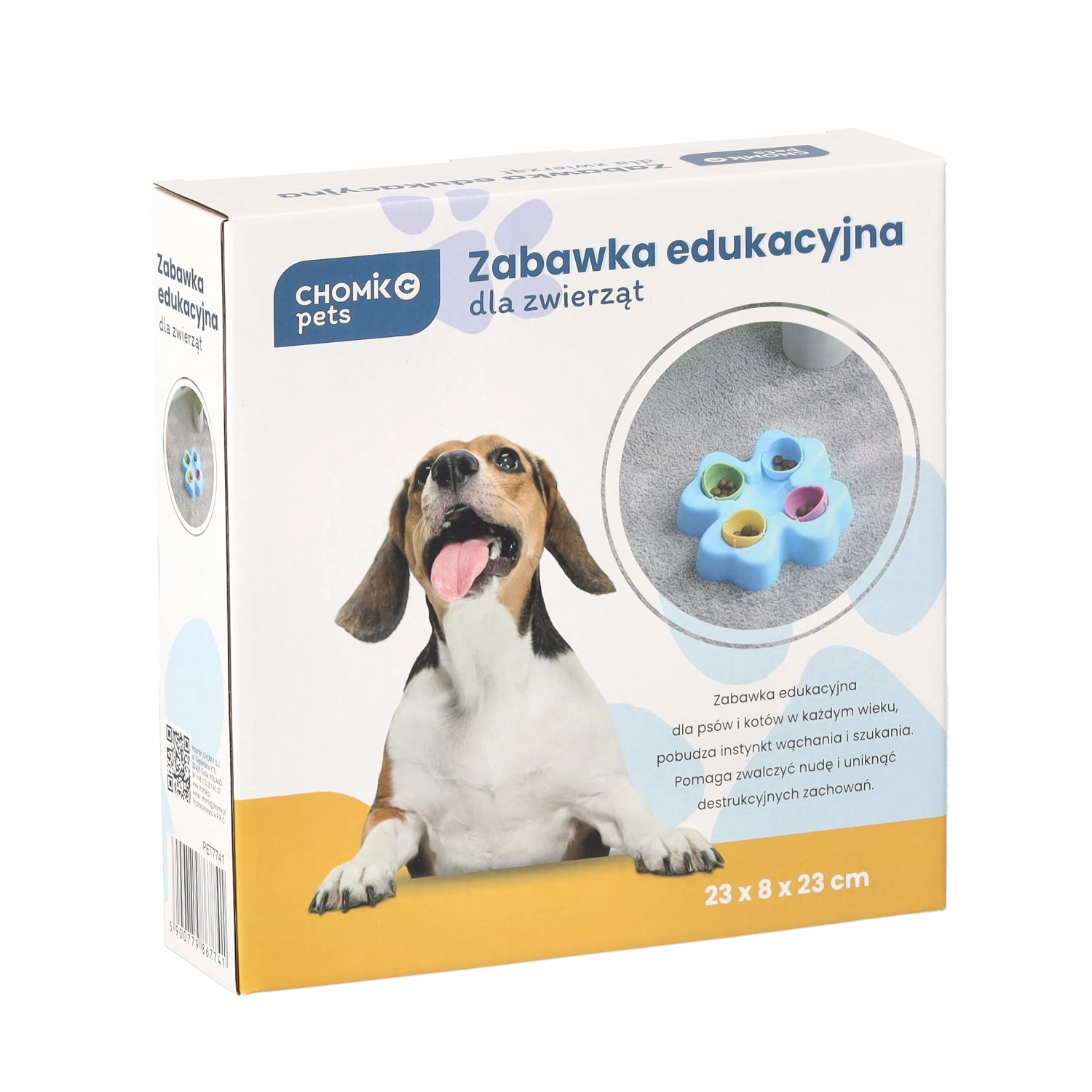 Zabavajte svojega ljubljenčka in spodbudite njegovo bistroumnost s to interaktivno igračo za pse in mačke. Vrtljive in preklopne posodice skrivajo priboljške, ki jih mora žival odkriti – tako trenira mentalno stimulacijo, reševanje težav in fino motoriko. Igrača je izdelana iz varnih, netoksičnih materialov, enostavna za čiščenje in primerna za vse pasme ter starosti.