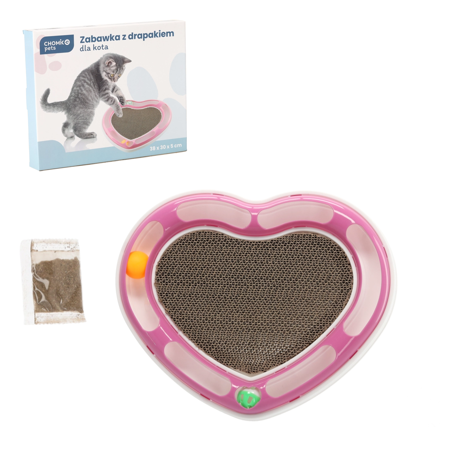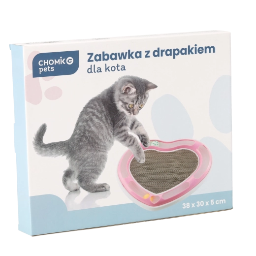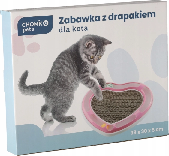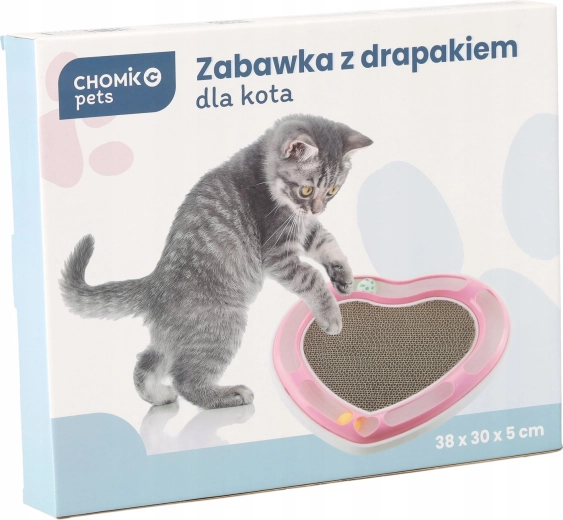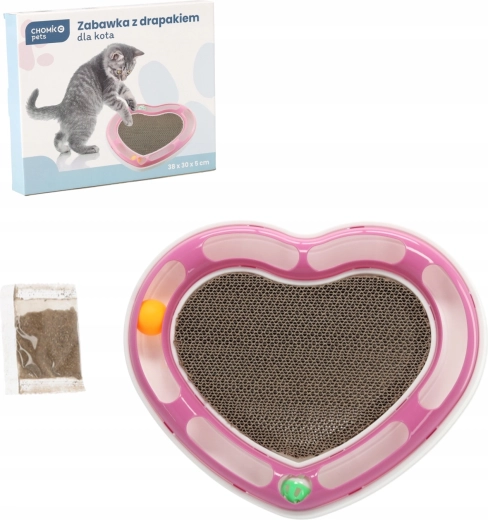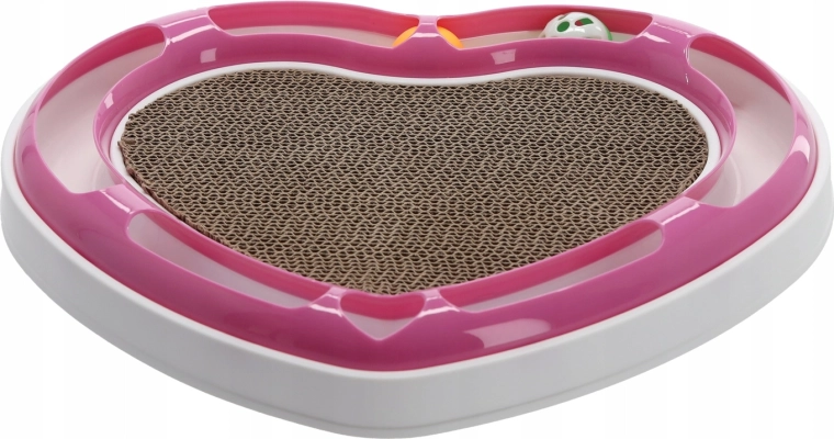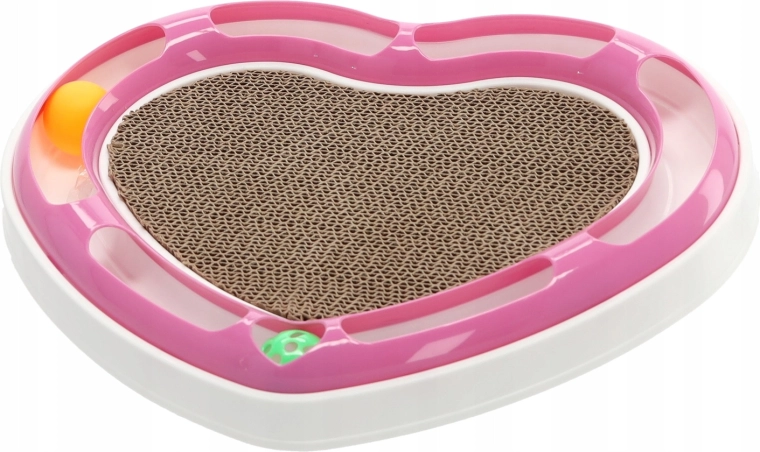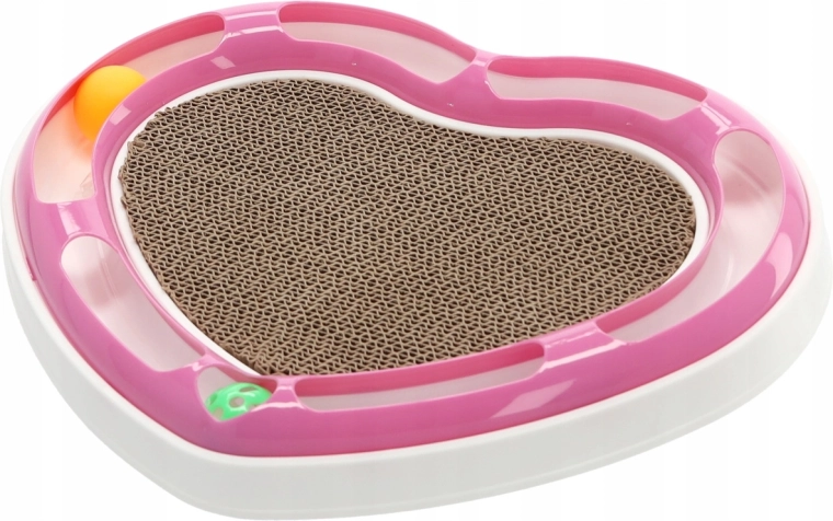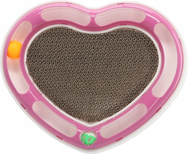 Ta oblikovalska igrača v obliki srca združuje dve najljubši mačji aktivnosti: lovljenje žogic v tirnici in praskanje na kartonski podlagi. Žogice, skrite v krožni tirnici, mačko spodbujajo k zasledovanju in nežnemu potiskanju s tačkami, medtem ko sredina iz valovite lepenke ponuja idealen prostor za nego krempljev.