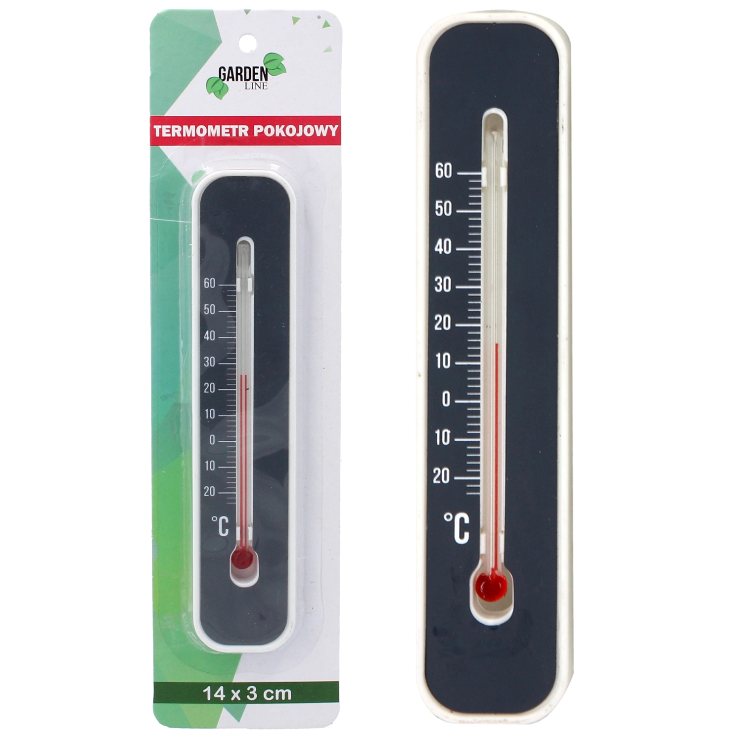 Elegantni sobni termometer z imitacijo lesa za natančno spremljanje temperature v notranjih prostorih. Ponuja merilno območje od -12 °C do 52 °C, natančnost ±1 °C in brezživosno zasnovo za varno uporabo. Zaradi kompaktnih mer 14 × 3 cm in stenske montaže je primeren za domove, pisarne in druge notranje prostore.