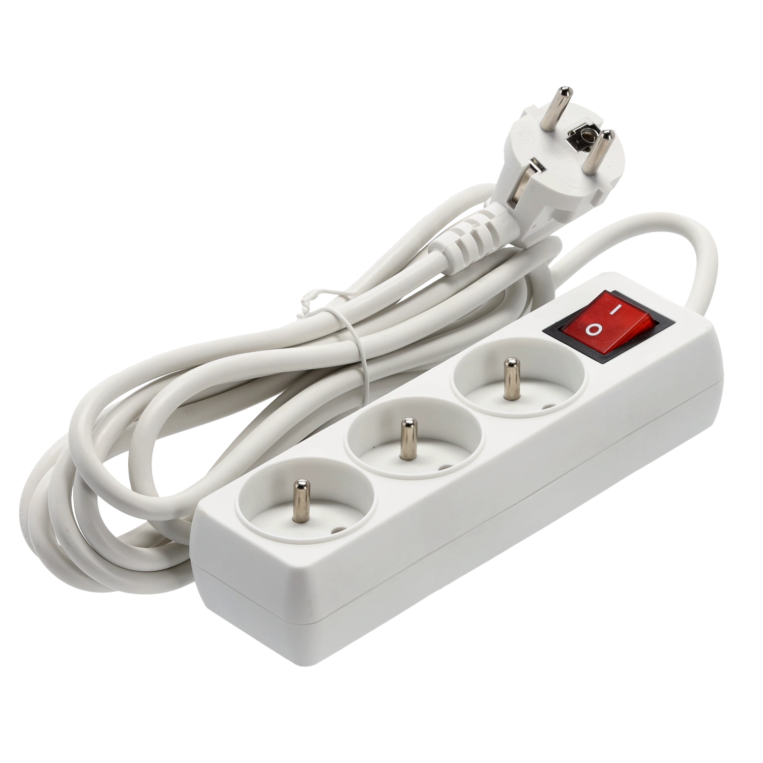 Prenapetostni razdelilec s stikalom, 3 vtičnice, 3 m, bel
