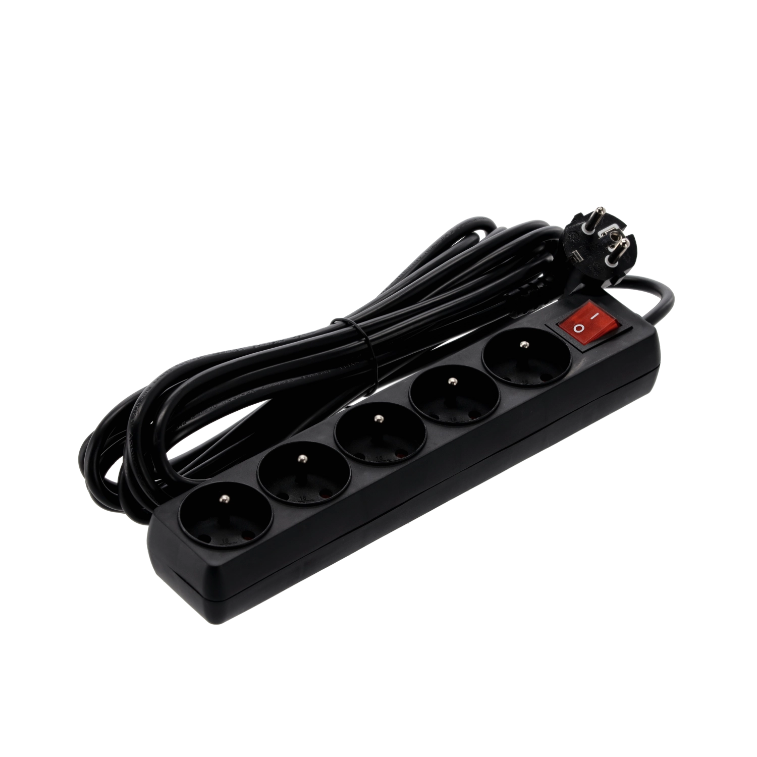 Zanesljiv razdelilec s 5 vtičnicami Schuko in osvetljenim glavnim stikalom za udoben hkraten nadzor vseh naprav. Zahvaljujoč 5-metrskemu bakrenemu kablu zlahka doseže tja, kjer ga potrebujete, odporno ohišje pa zagotavlja varno napajanje doma in v pisarni.
