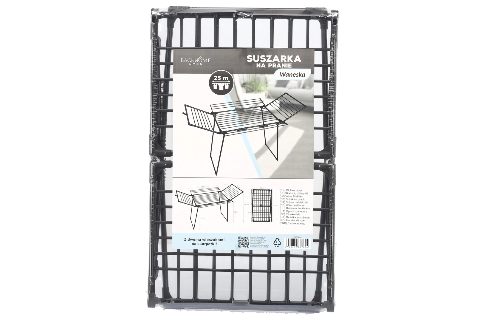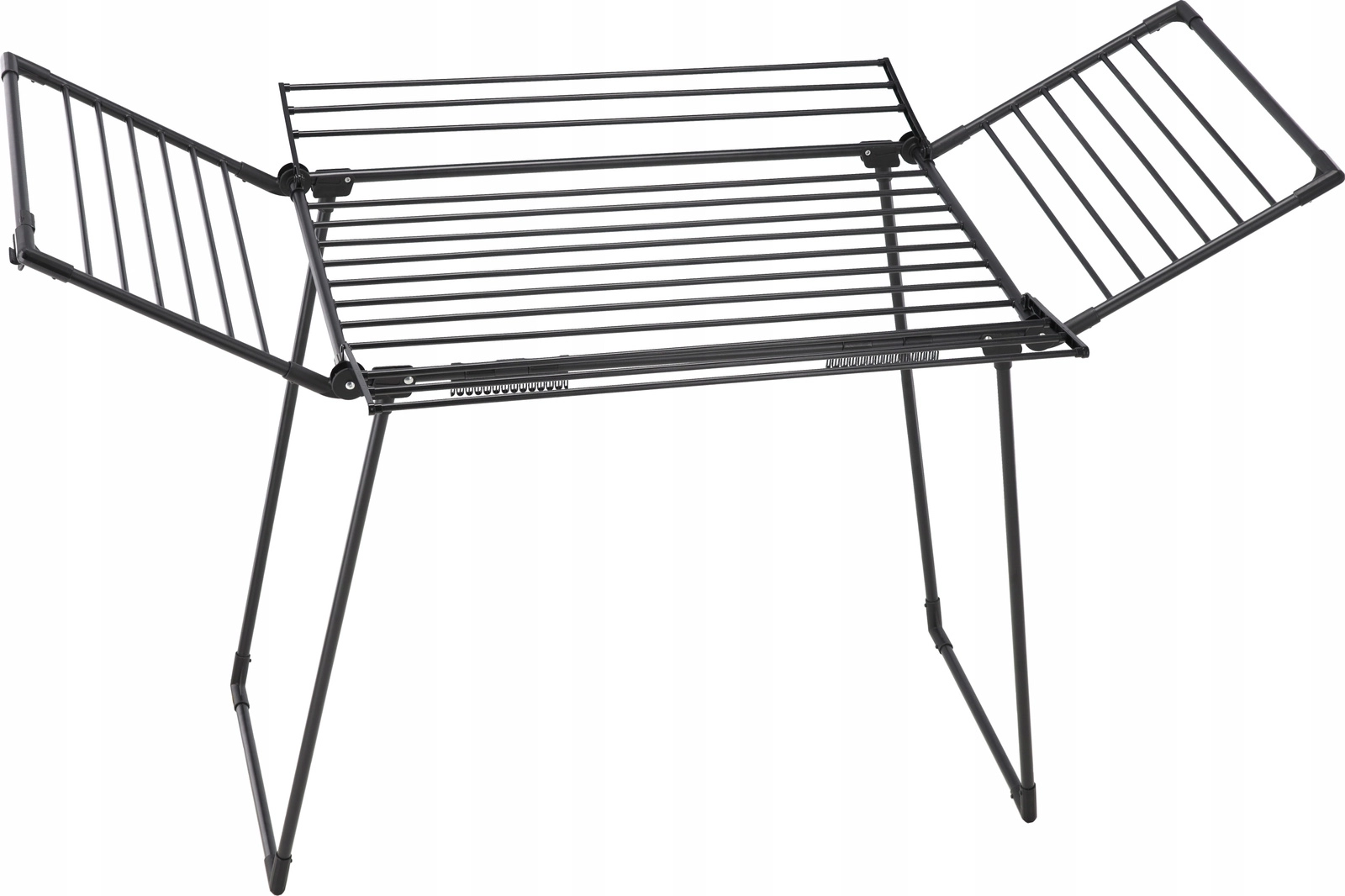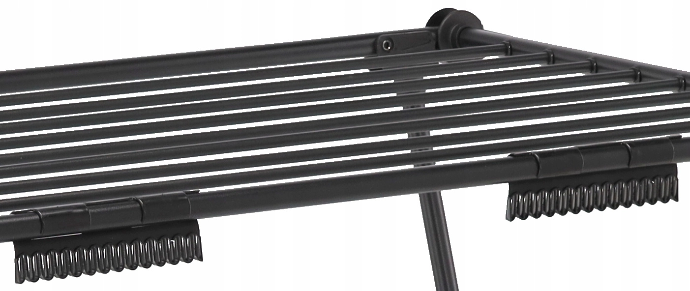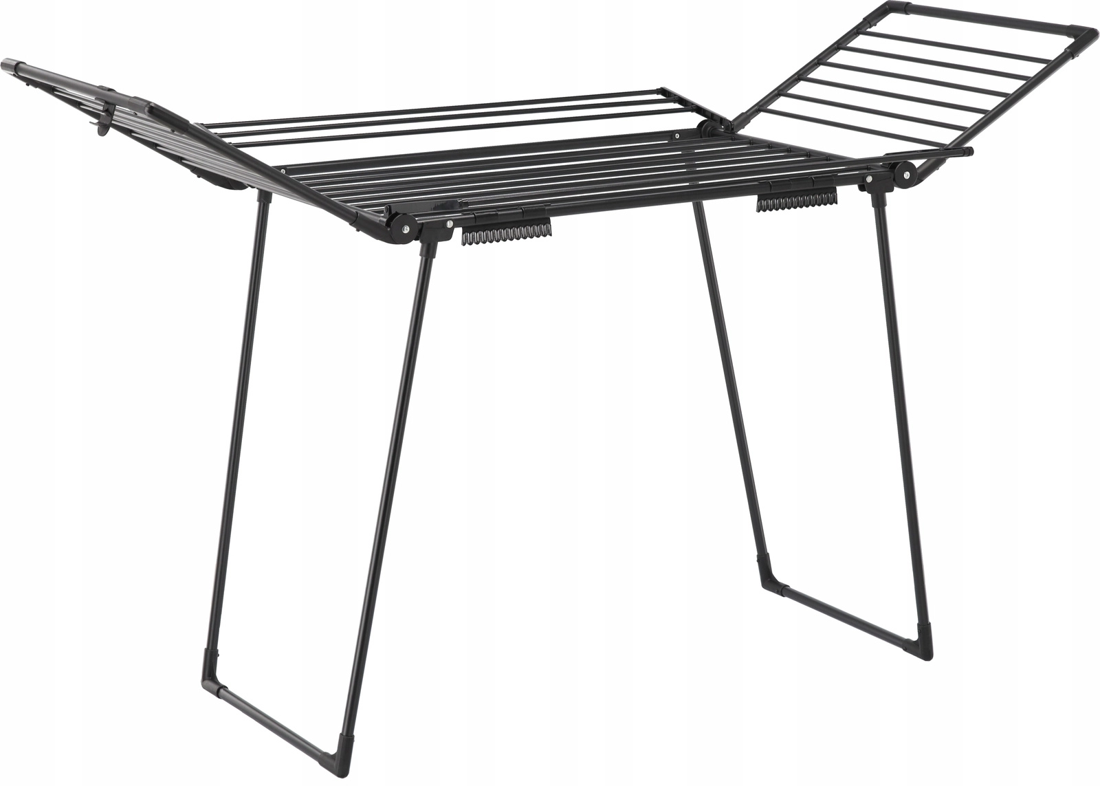 Praktično stojalo Waneska ponuja veliko sušilno površino zahvaljujoč štirim rokam in preklopnim krilom. Zaradi robustnega jeklenega okvirja s praškastim lakom v mat črni barvi prenese vsakodnevno uporabo doma ali na balkonu. Dva integrirana držala za nogavice ohranjata drobne kose perila pregledno in brez ščipalk.