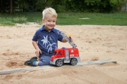 Gasilski avto Truxx je izdelan iz kakovostne plastike in ima robustno konstrukcijo, ki jo dopolnjuje realistična figura gasilca.