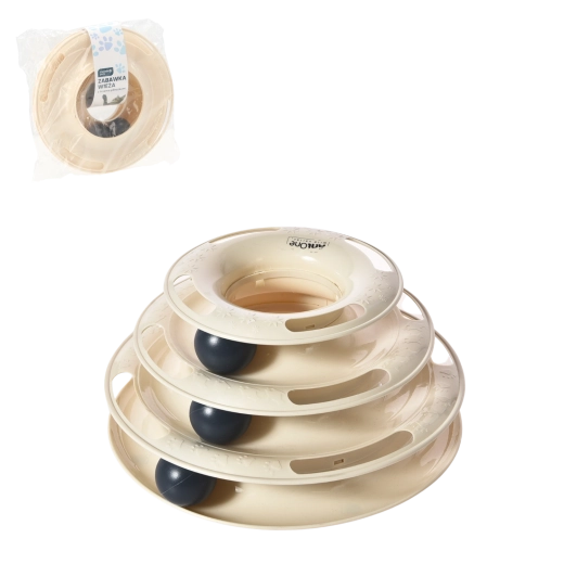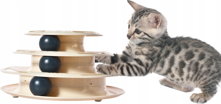 Privoščite svoji mački pametno zabavo, ki jo bo zaposlila za dolge ure. Tristopenjski stolp z žogicami se ob vsakem dotiku s taco zavrti in motivira mačko k nadaljnjemu lovu. Zaradi tekočega gibanja žogic po odprtih tirnicah igrača spodbuja naravne nagone in vsakodnevno gibanje.