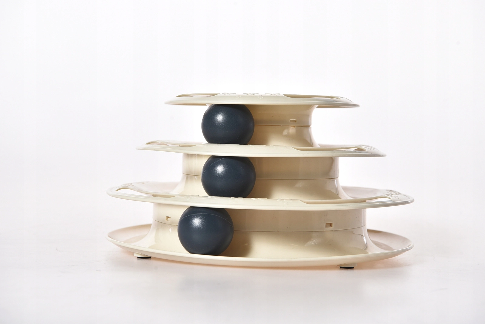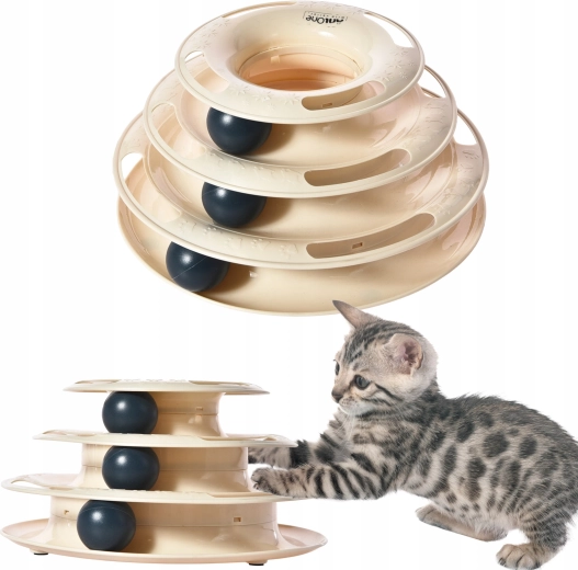 Interaktivna igrača za mačke s tristopenjsko zasnovo in lahkimi žogicami podpira naravne lovske nagone, fizično aktivnost in duševno stimulacijo. Stabilna izvedba iz odporne plastike in nedrseče nogice zagotavljata varno in dolgotrajno zabavo za mačke vseh starosti.