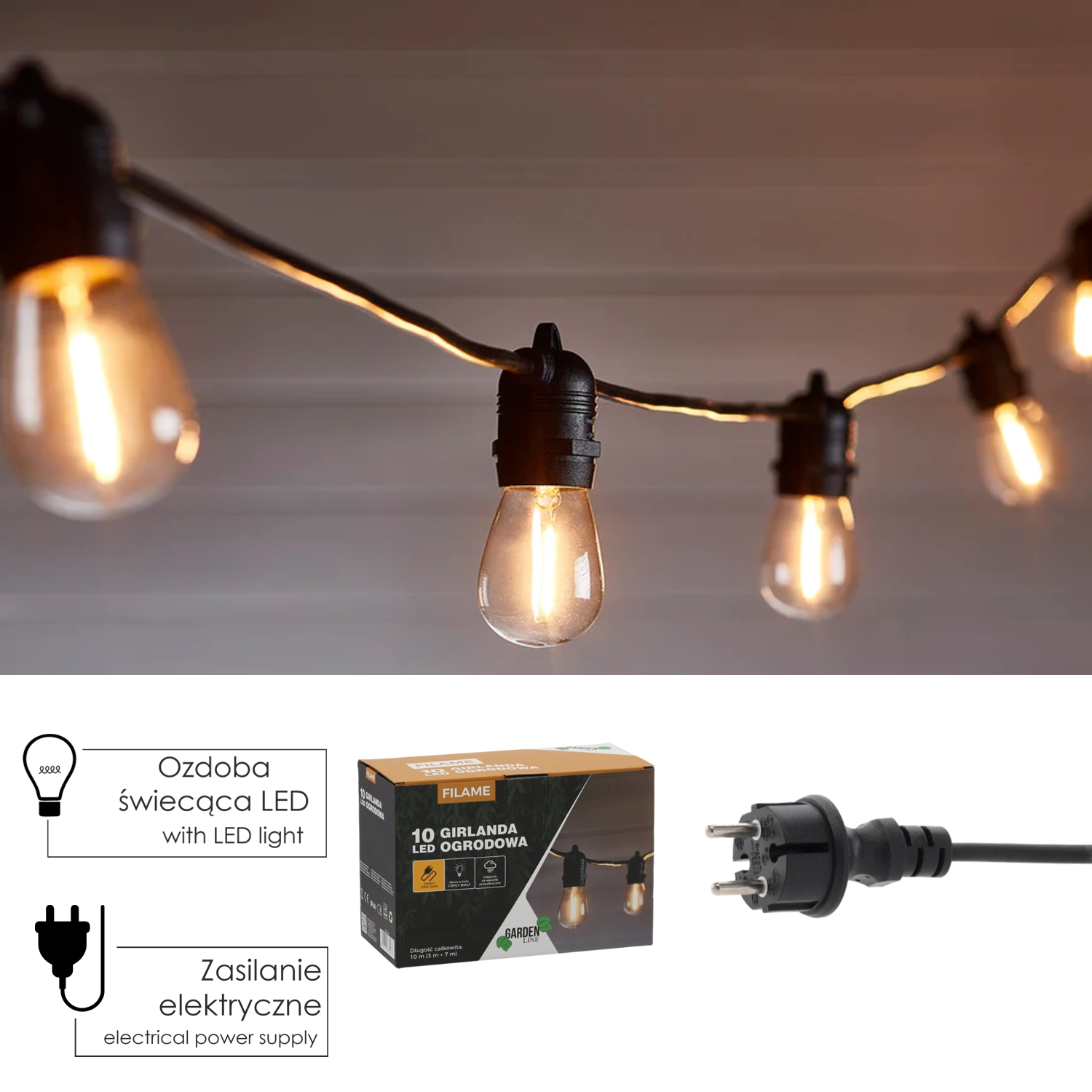 Vrtna svetlobna girlanda FILAME 10x LED E27, toplo bela, 10 m, IP44, 230 V