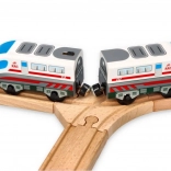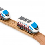 To lokomotivo je mogoče preprosto povezati z lesenimi vlakovnimi garniturami drugih proizvajalcev, ki jih morda že imate doma.