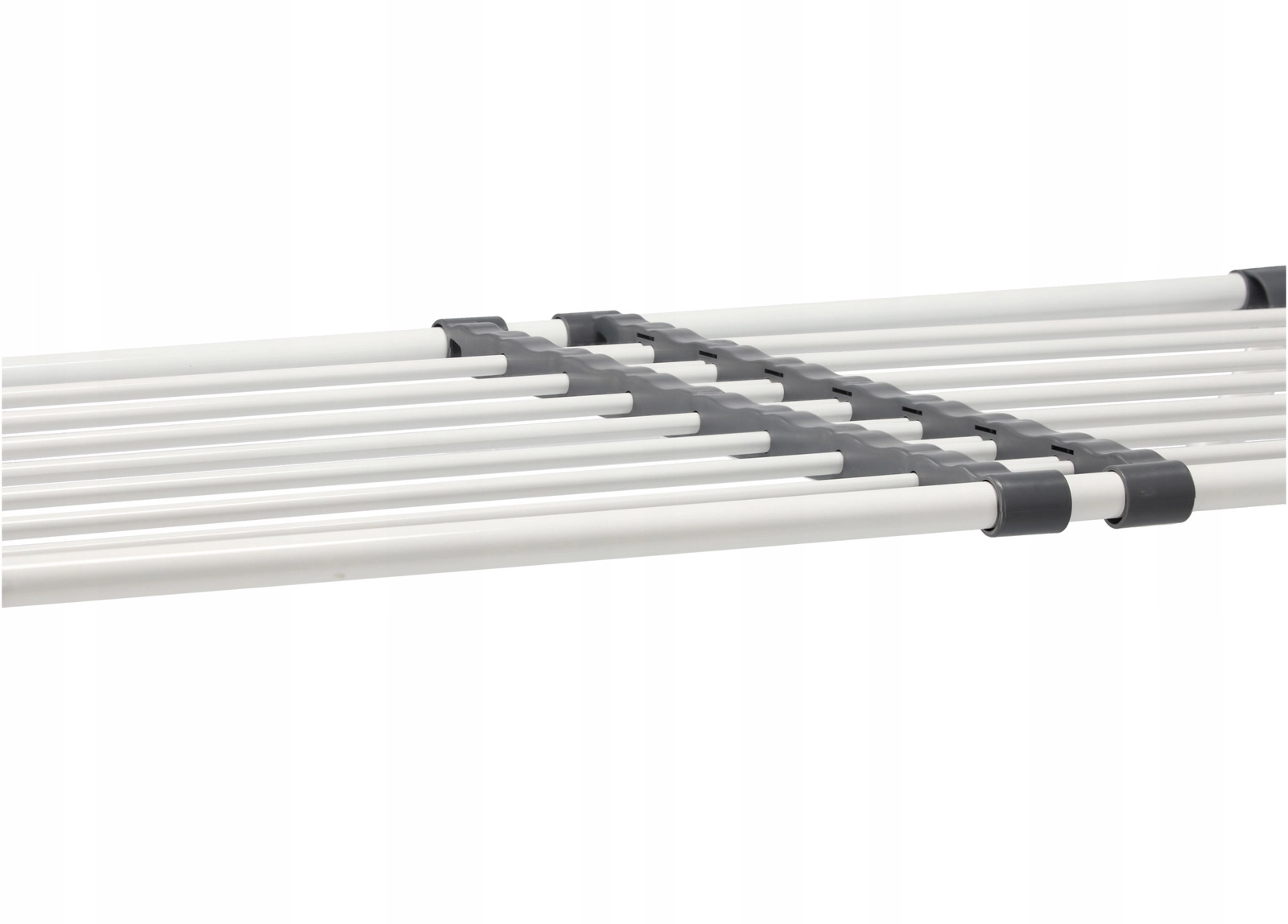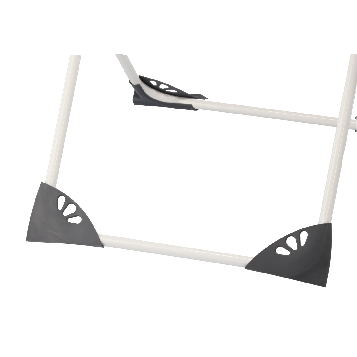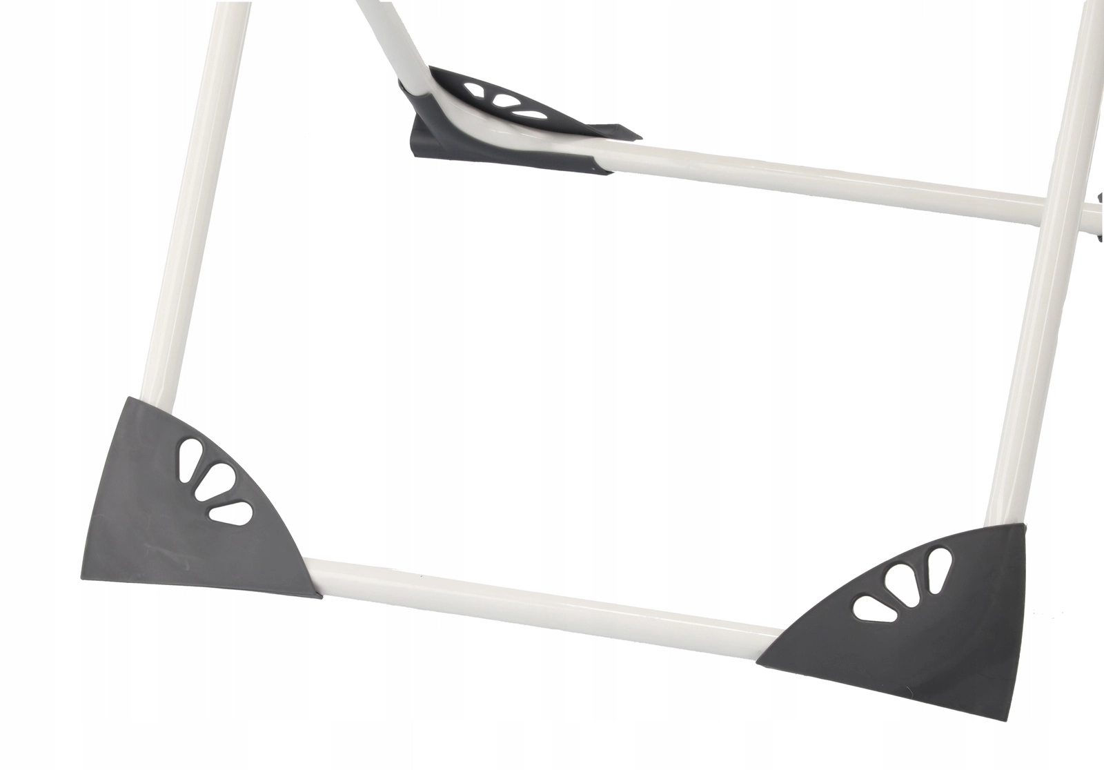 Vzdržljivi materiali odporni proti koroziji in protizdrsni zaključki nog zagotavljajo stabilnost na različnih podlagah. Po uporabi stojalo preprosto zložite v kompaktne dimenzije, zato ga lahko pospravite v omaro, shrambo ali za vrata.