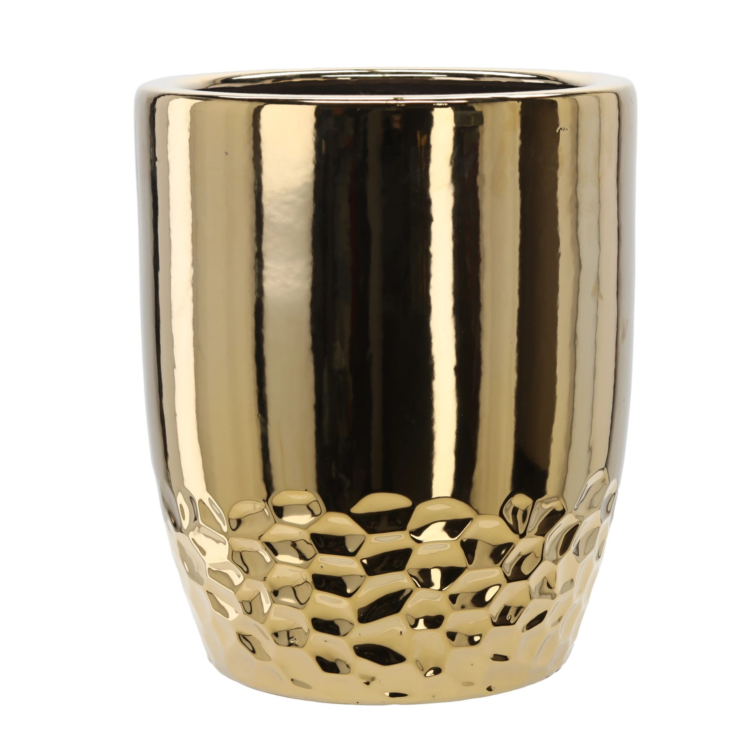 Ta moderen cvetlični lonec v zlatem izvedbenem finišu odlično poudari zelenje in postane stilski poudarek dnevne sobe, preddverja ali pisarne. Trdna keramična konstrukcija bolje zagotavlja stabilnost višjih rastlin, hkrati pa je enostavna za vzdrževanje.