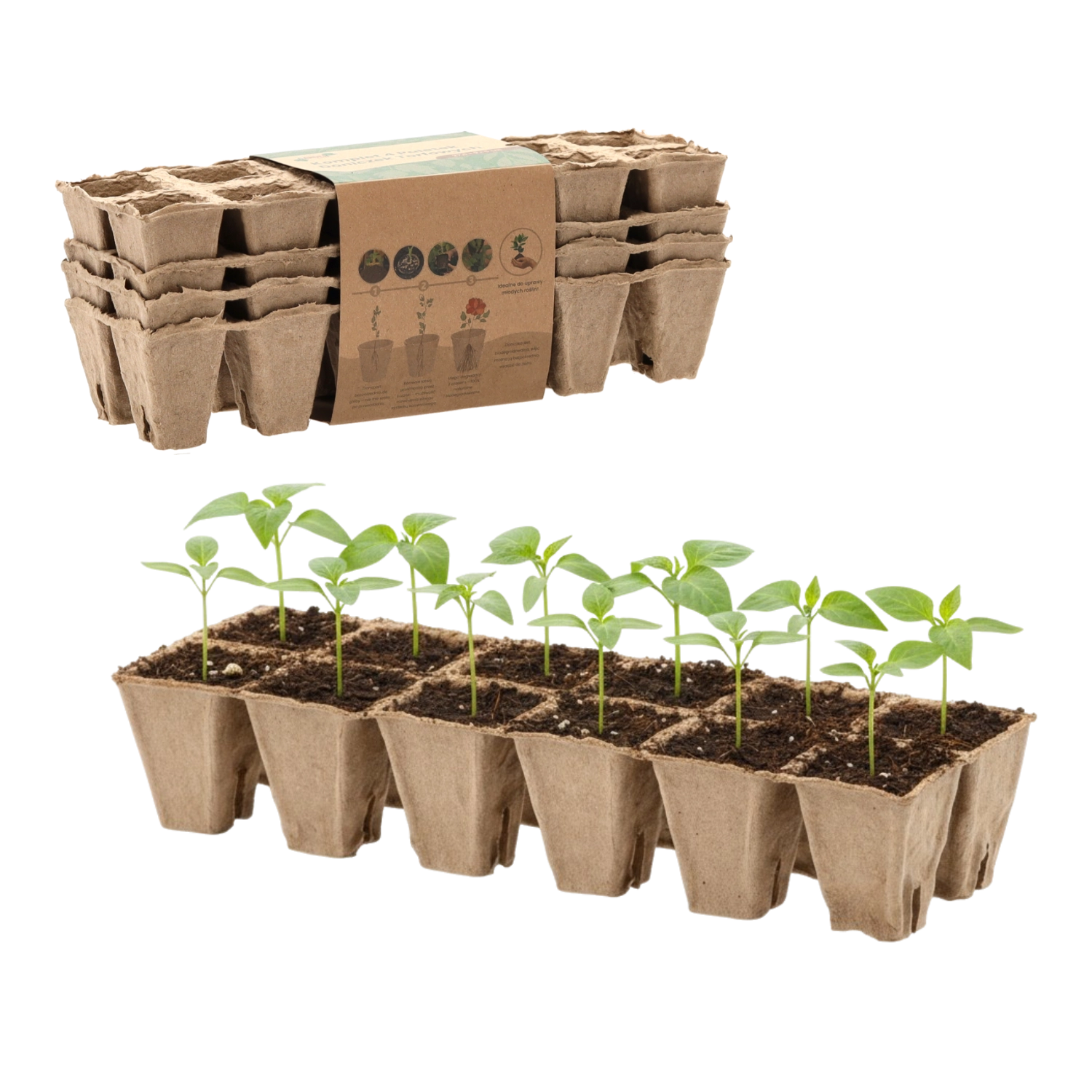 Pladnje iz stisnjene papirnato‑šotne mase lahko posadite neposredno v zemljo. Naravno se razgradijo in podprejo koreninski sistem brez nepotrebnih odpadkov.