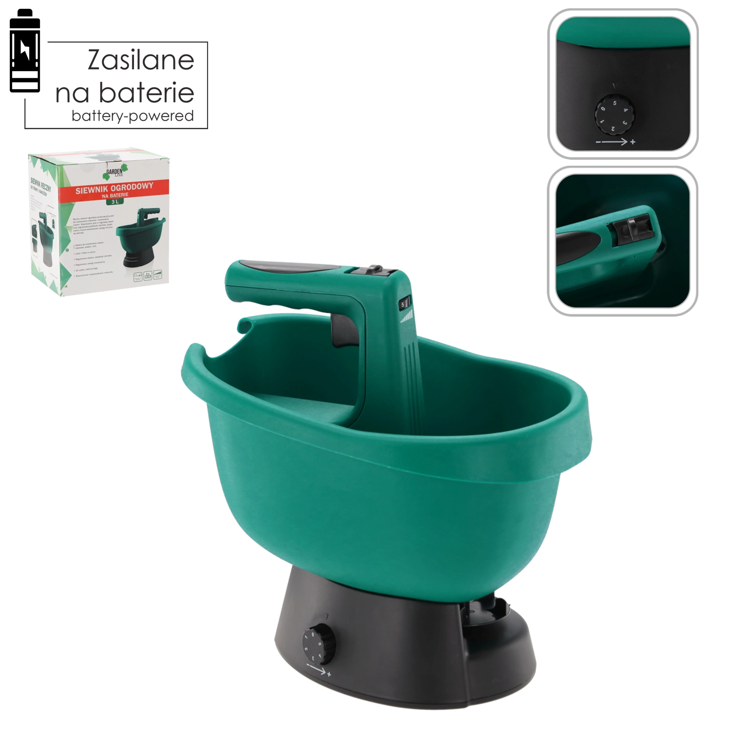 Pospešite in izostrite delo na vrtu. Akumulatorski ročni trosilnik s kapaciteto 3 litre enakomerno raztresa semena, travne mešanice in granulirana gnojila. Z napajanjem 6 V (4× AA) in enostavnim upravljanjem dosežete stabilno zmogljivost brez napora ročnega posipanja.