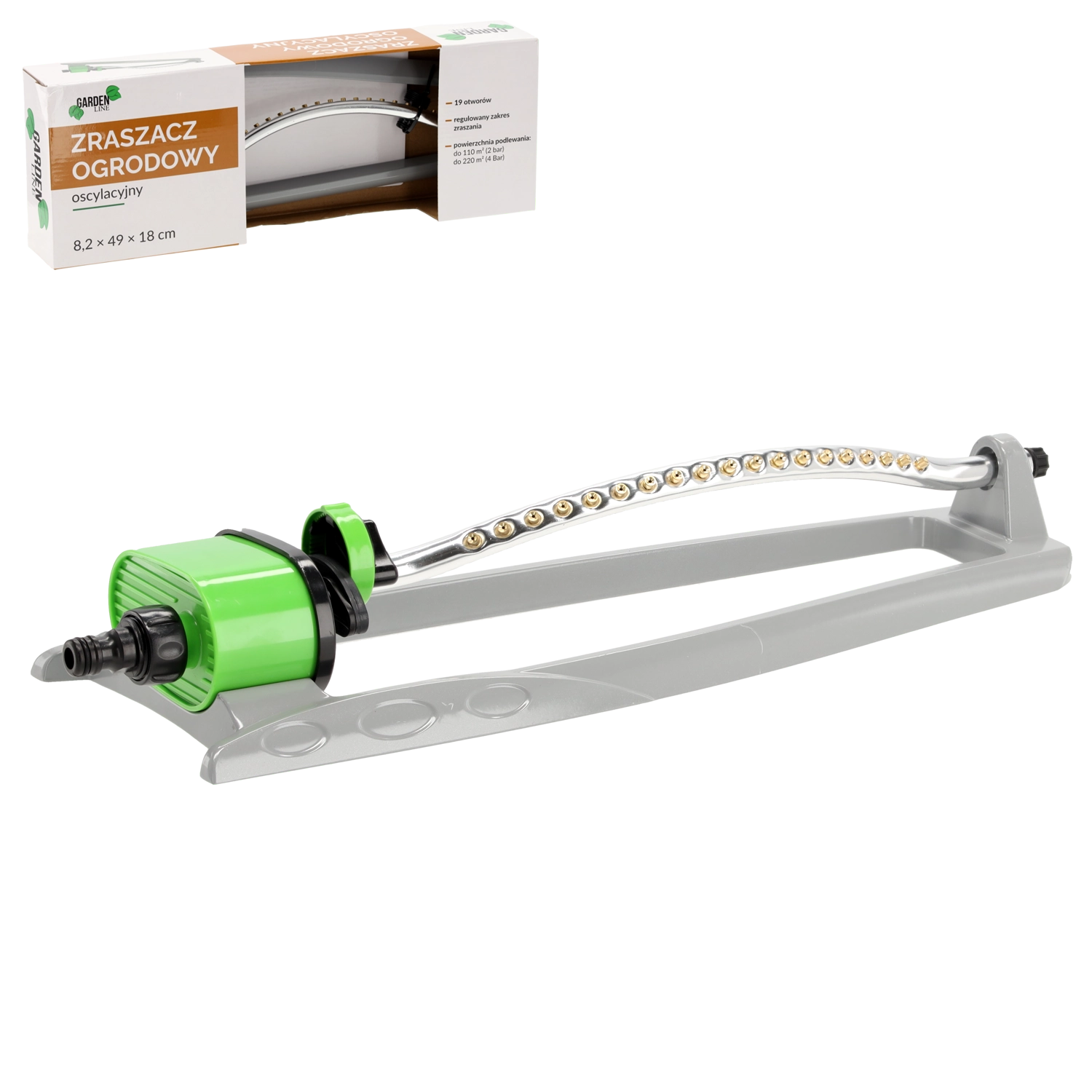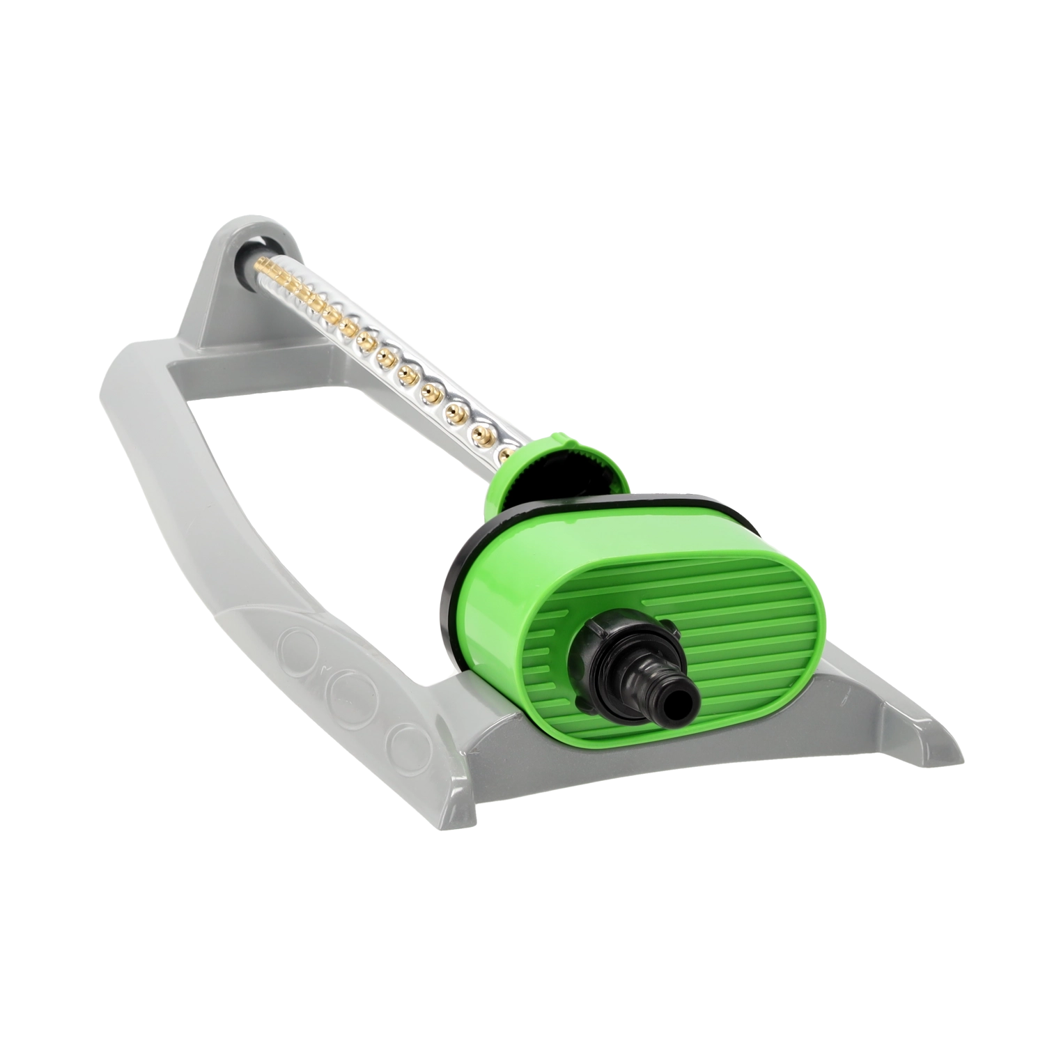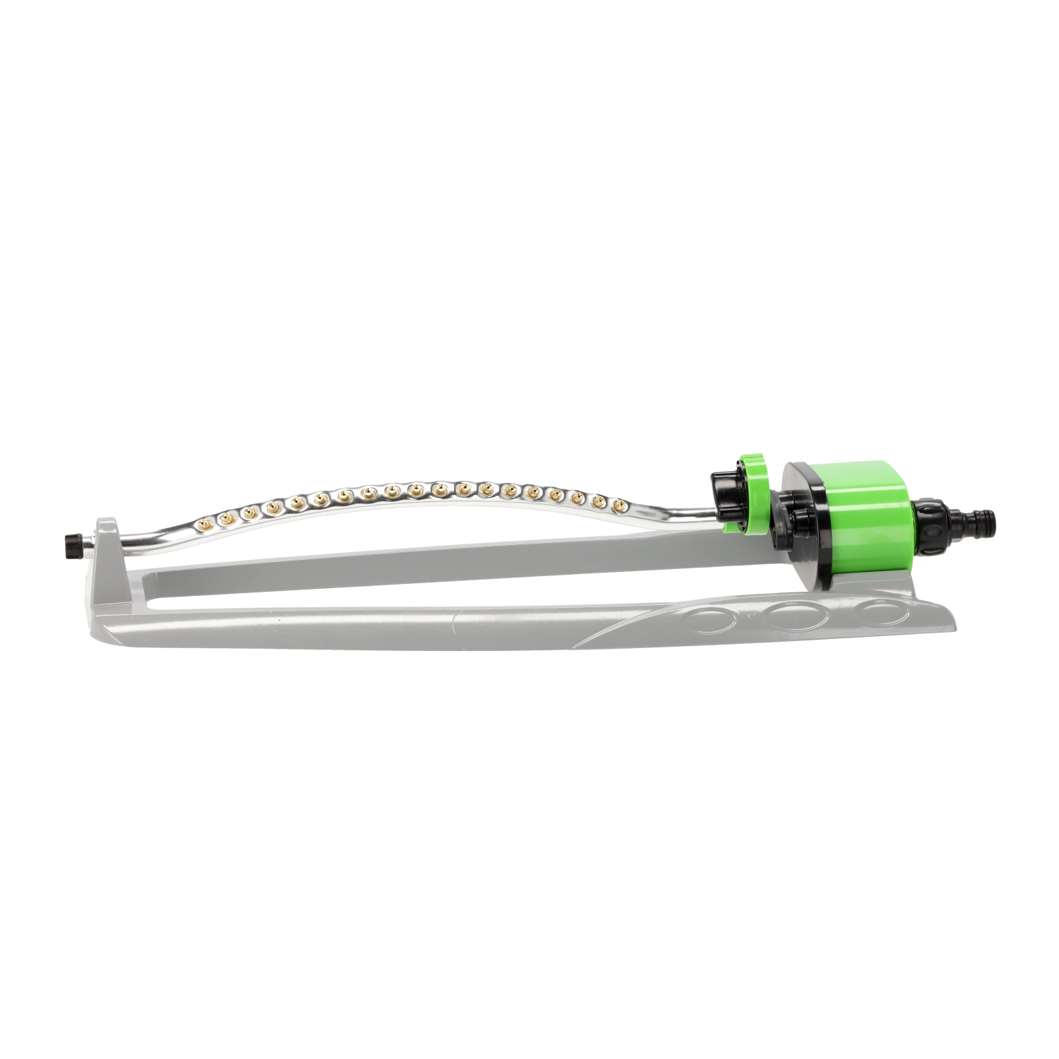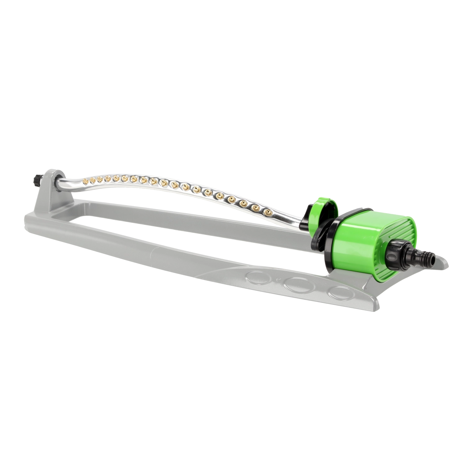 Oscilacijski zalivalnik je zanesljiv pomočnik za redno in nežno zalivanje trat, gredic in okrasnih površin. Robusta konstrukcija iz aluminija in ABS zagotavlja dolgo življenjsko dobo, medtem ko 19 medeninastih šob nudi nežen in enakomeren dež brez nastajanja luž.