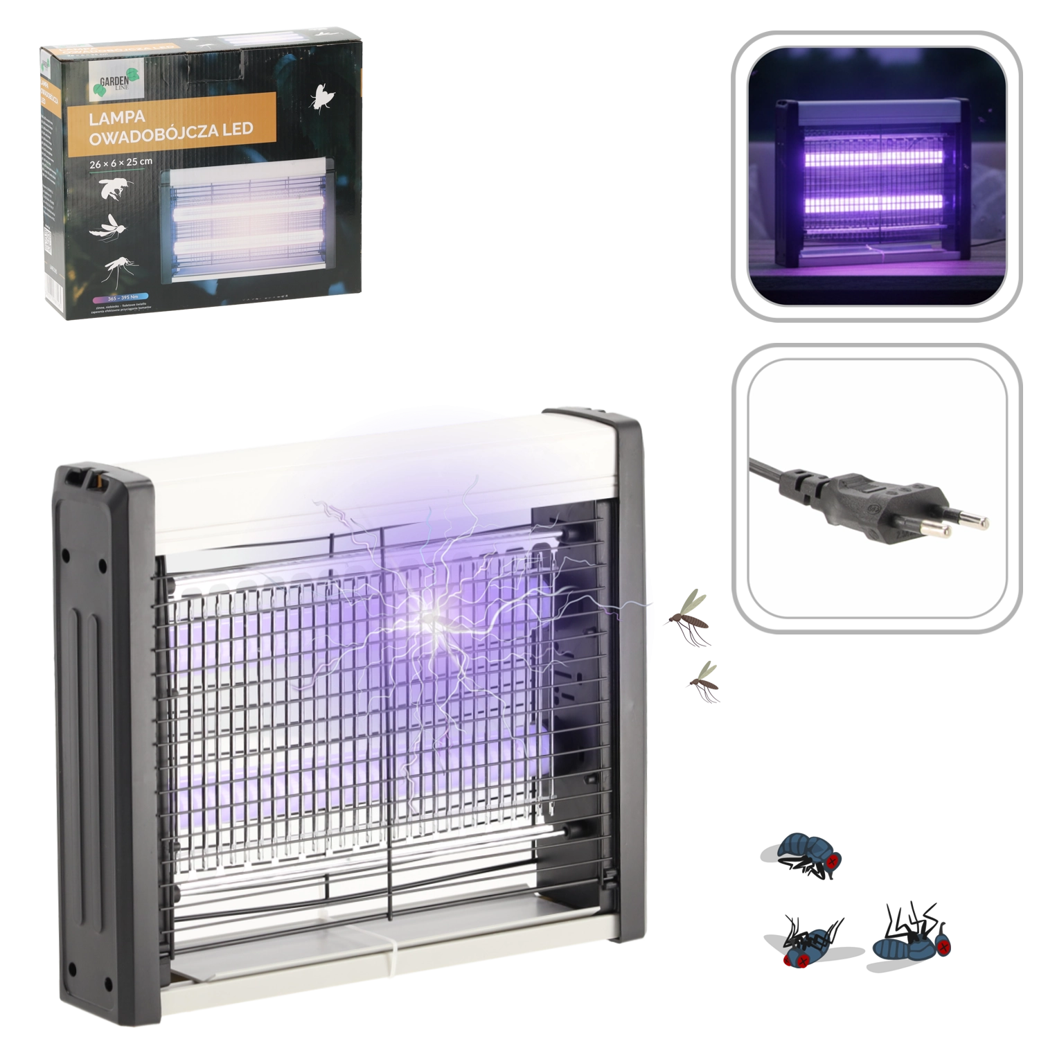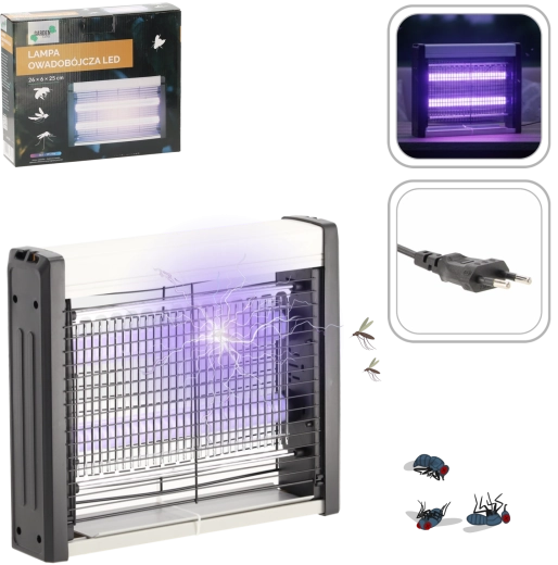 Zanesljivo se znebite komarjev in drugega letečega mrčesa s kompaktnim LED lovilcem dimenzij 26 × 6 × 25 cm. Naprava uporablja nežno svetlobo, ki privablja insekte, ter zaščitno mrežico za njihovo takojšnje uničenje. Zaradi energijsko varčnega delovanja 4 W je primeren za domove, pisarne in počitniške objekte.