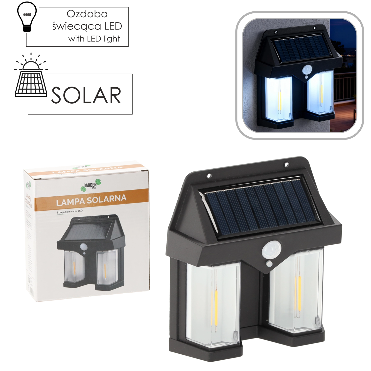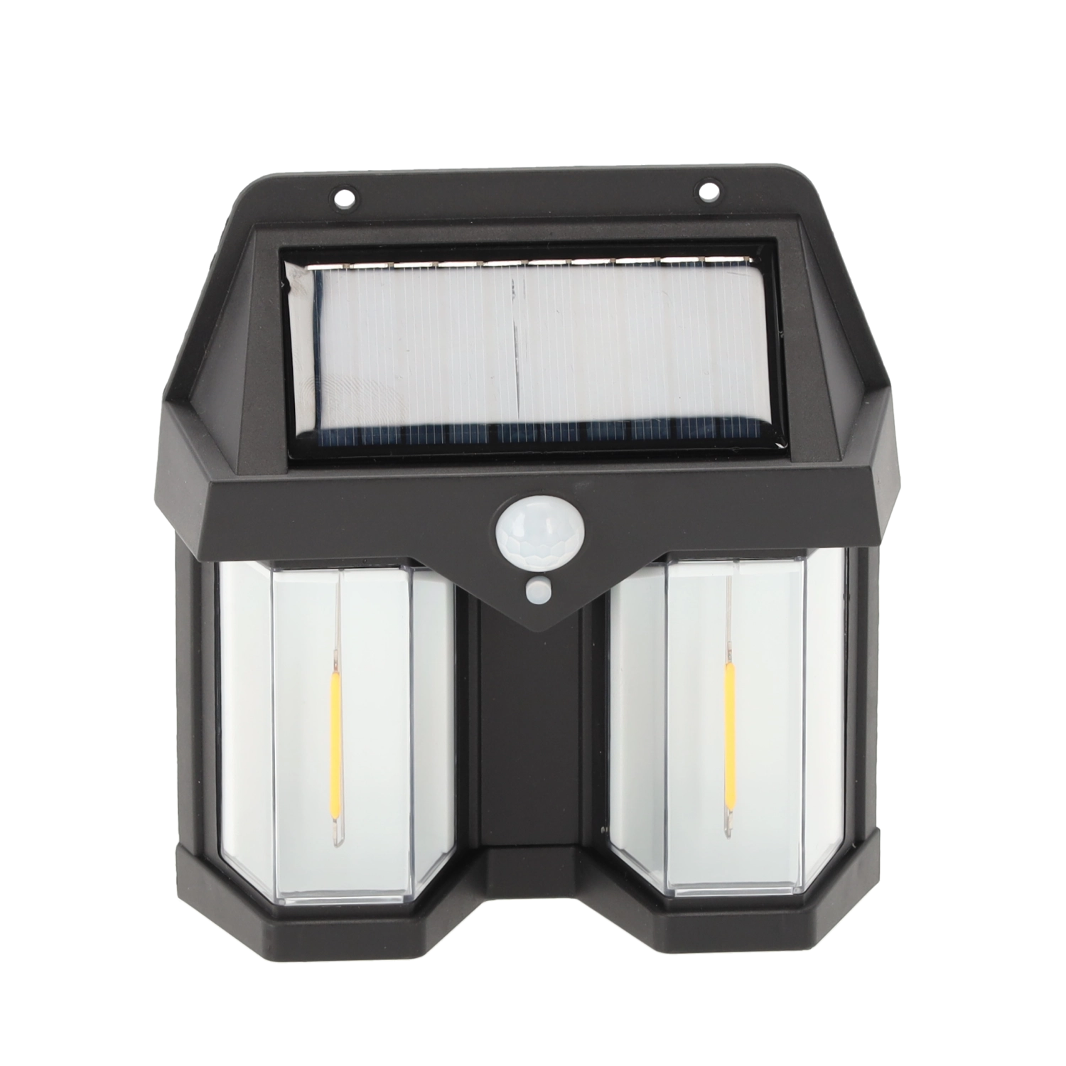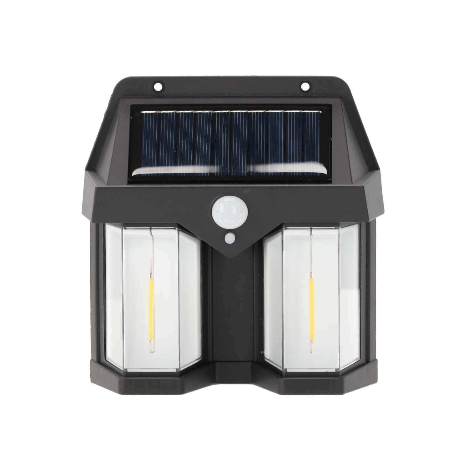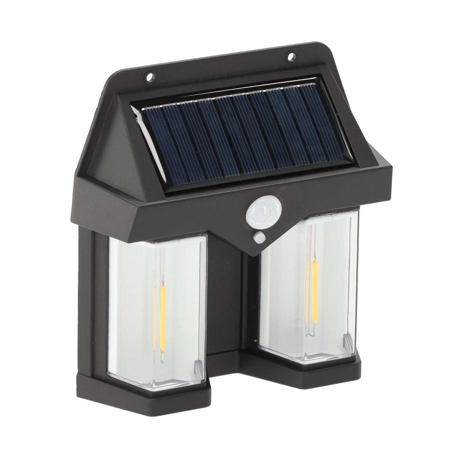 Solarna svetilka združuje moderen dizajn in praktično funkcionalnost. Vgrajen panel z močjo 1 W/5,5 V čez dan polni baterijo 18650 (3,7 V, 800 mAh) in po mraku samodejno aktivira osvetlitev. PIR senzor gibanja z dosegom 8–10 m in širokim zajemom 270° poskrbi za svetlobo prav v trenutku, ko greste mimo.
