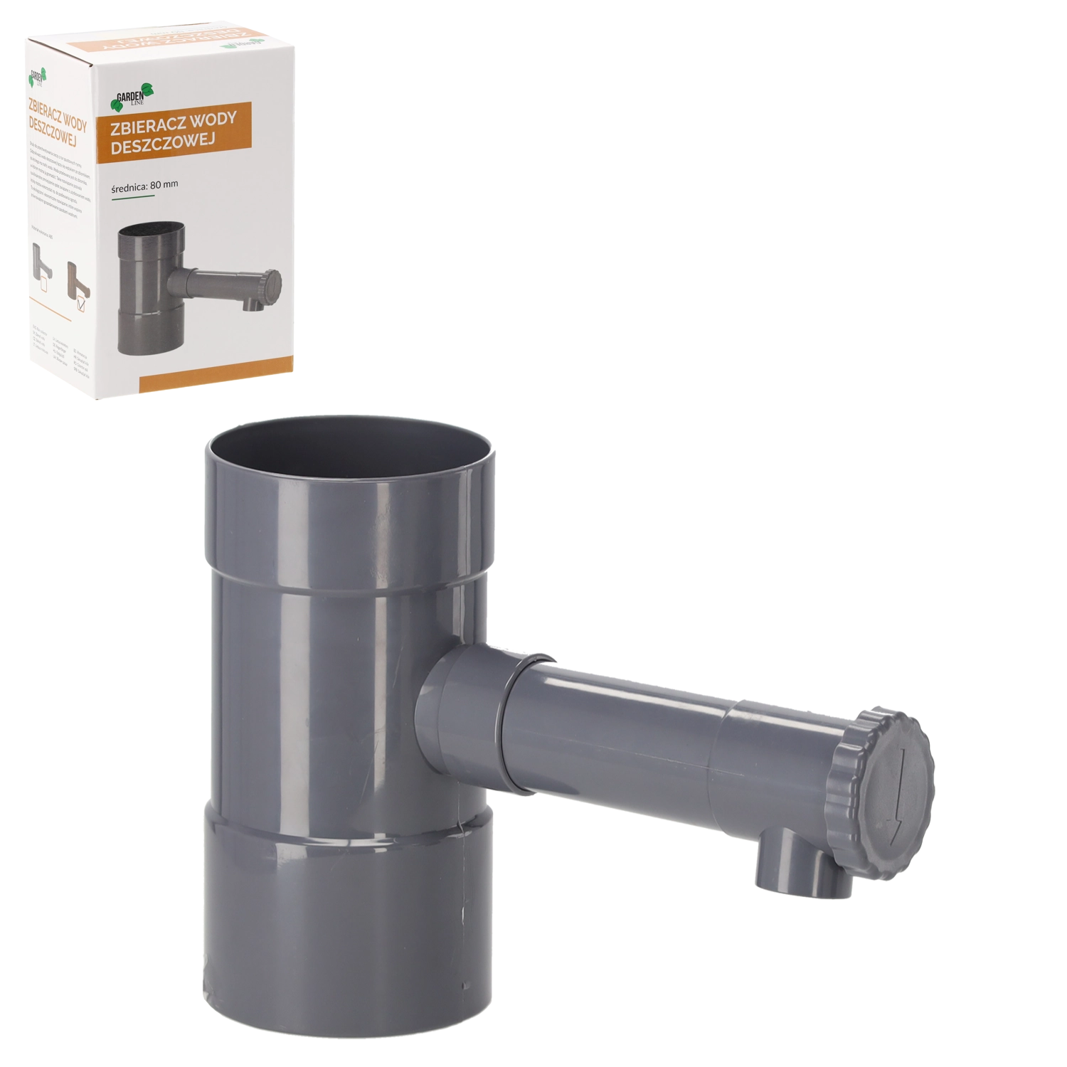 Siv zbiralnik deževnice za odtočne cevi s premerom 80 mm zajema del pretoka iz žlebne cevi in ga usmerja v sod ali rezervoar. Robustna plastika ABS je odporna na vremenske razmere in UV-sevanje, zato je idealna za dolgotrajno zunanjo uporabo. Namestitev je hitra in brez zapletenih prilagoditev.