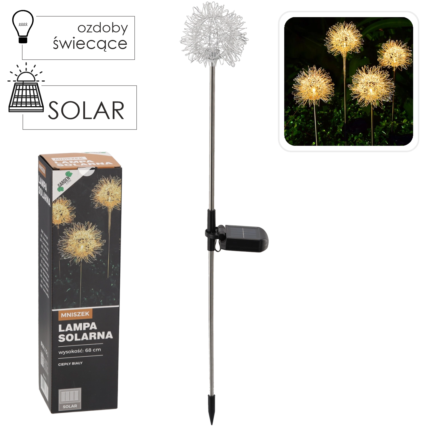 - Varčno delovanje: sončno napajanje z do 6–7 urami svetljenja po polnem polnjenju.